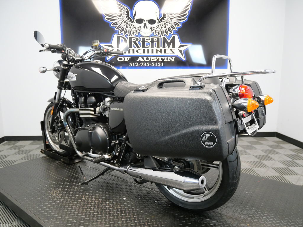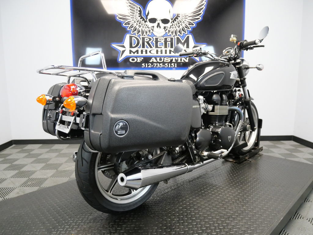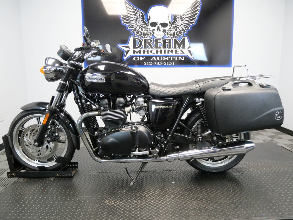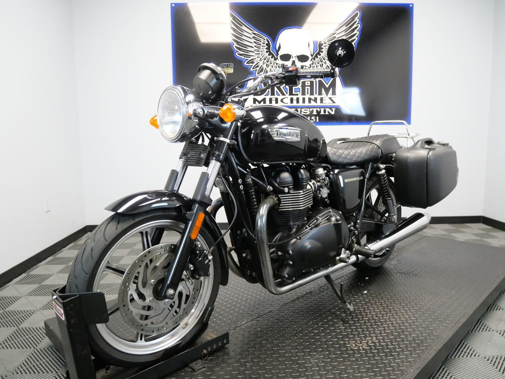 SHIPPING, LEASING, FINANCING AND EXTENDED WARRANTY MAY BE AVAILABLE! YOU ARE LOOKING AT A 2013 TRIUMPH BONNEVILLE STANDARD WITH 16,275 MILES ON IT. IT IS PHANTOM BLACK IN COLOR AND POWERED BY A 865CC FUEL INJECTED ENGINE AND 5 SPEED TRANSMISSION. THE BIKE COMES WITH 3 KEYS. THERE ARE A FEW EXTRAS ON THE BIKE WHICH INCLUDE HEPCO & BECKER SIDE CASES ($664.95), LUGGAGE RACK ($344.95), AND QUILTED PATTERN SEAT ($405.95). THERE ARE NO SCRATCHES, DENTS, OR DINGS THAT I CAN FIND. THE CHROME AND ALUMINUM ARE IN GOOD CONDITION. THE TIRES HAVE GOOD TREAD LEFT ON THEM.