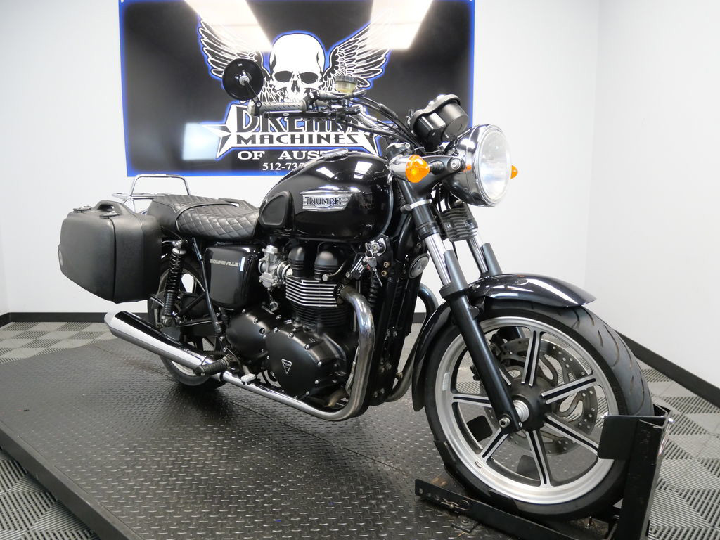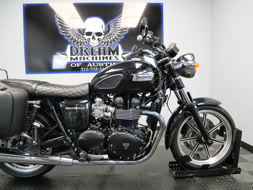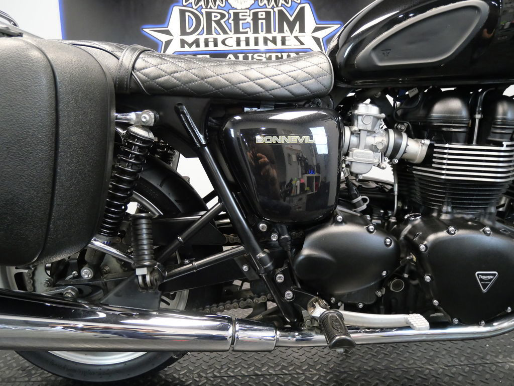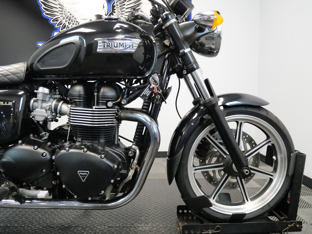 SHIPPING, LEASING, FINANCING AND EXTENDED WARRANTY MAY BE AVAILABLE! YOU ARE LOOKING AT A 2013 TRIUMPH BONNEVILLE STANDARD WITH 16,275 MILES ON IT. IT IS PHANTOM BLACK IN COLOR AND POWERED BY A 865CC FUEL INJECTED ENGINE AND 5 SPEED TRANSMISSION. THE BIKE COMES WITH 3 KEYS. THERE ARE A FEW EXTRAS ON THE BIKE WHICH INCLUDE HEPCO & BECKER SIDE CASES ($664.95), LUGGAGE RACK ($344.95), AND QUILTED PATTERN SEAT ($405.95). THERE ARE NO SCRATCHES, DENTS, OR DINGS THAT I CAN FIND. THE CHROME AND ALUMINUM ARE IN GOOD CONDITION. THE TIRES HAVE GOOD TREAD LEFT ON THEM.