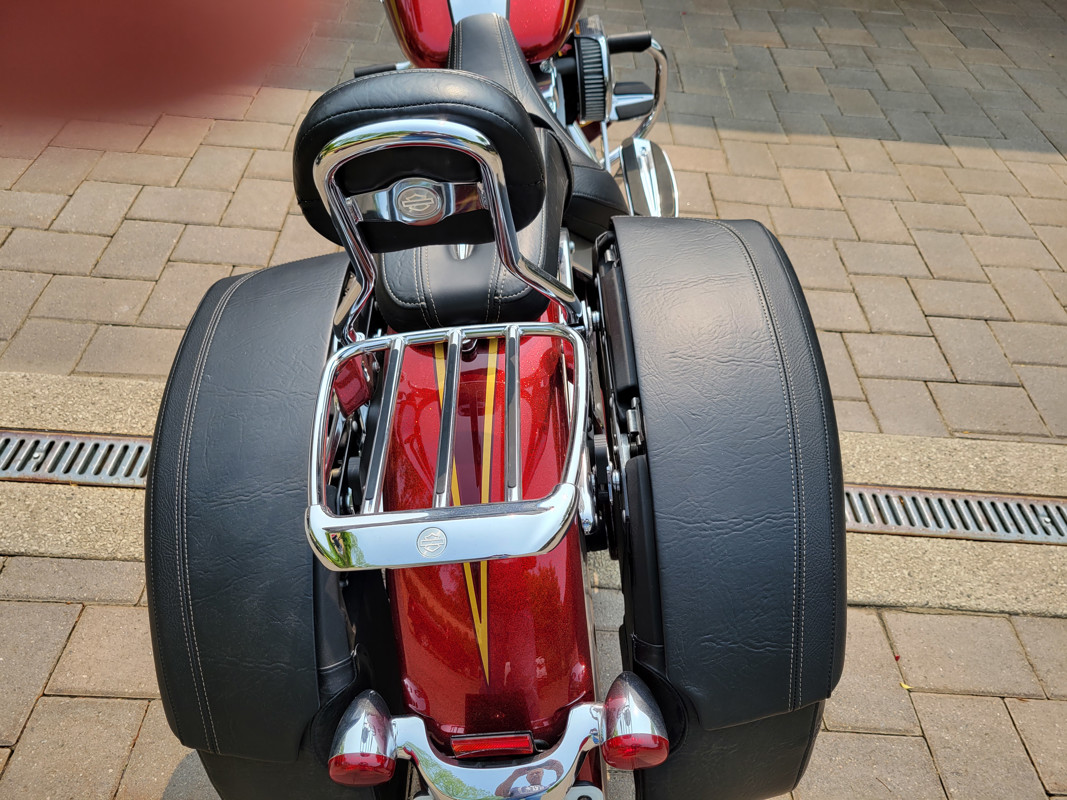 This bike was purchased new by the sole owner at our local Harley-Davidson dealership. The female owner did not ride the bike very often as the mileage indicates. These are actual miles. The owner would like the bike to go to someone who will enjoy it. The bike has been in a climate controlled garage from day one. The body is in perfect condition and the paint is Red Sunglo with Ruby Flake and Airflow Graphics. The accessories on this beauty are to numerous to list. I can send a list to an interested buyer or you can see them on line at various websites including Ultimate Motorcycling. The title is clear and the bike comes with the gold key and a cover. The owner and her husband asked me to assist them in selling the bike because they travel quite often and are very busy. I have very recently sold a TriGlide for them which can be seen in a couple of the photos. That bike had 54 miles on it. Email for questions and I will provide my and the owner's information to serious buyers.