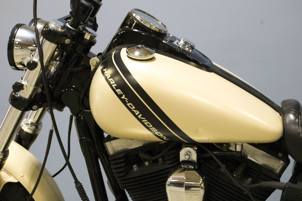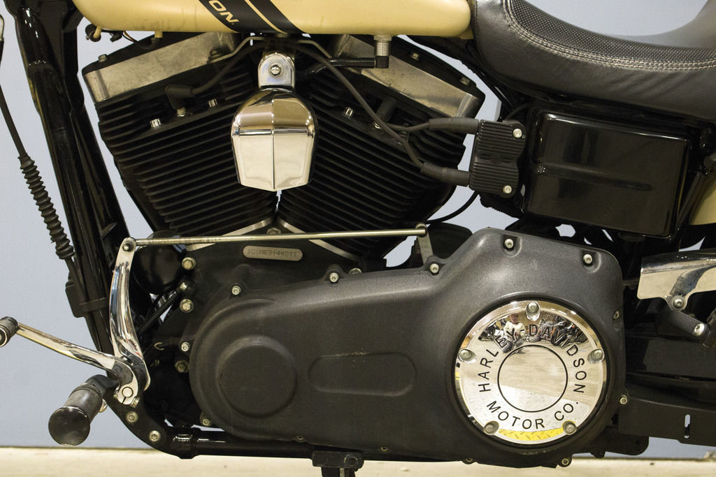 The 2014 Fat Bob® proves there’s no such thing as too much black. From the aluminum triple clamps and battery box cover to the headlight trim ring and rear shock covers, this thick-cut, menacing bad boy is blacked out from top to bottom, nose to tail. Go ahead. Flash some black.
