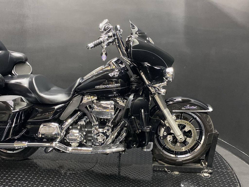 YOU ARE LOOKING AT A 2014 HARLEY DAVIDSON ULTRA LIMITED (FLHTK) WITH 80,624 MILES ON IT. IT IS VIVID BLACK IN COLOR AND POWERED BY A 1690CC (103") FUEL INJECTED ENGINE AND 6 SPEED TRANSMISSION. THE BIKE COMES WITH ABS BRAKES, CRUISE CONTROL, NAVIGATION, LED HEADLIGHT/PASSING LAMPS, 1 KEY, 1 FOB, AND FACTORY SECURITY SYSTEM. THERE ARE SOME EXTRAS ON THE BIKE WHICH INCLUDE RINEHART SLIP-ON MUFFLERS ($584.95), DUAL HEADERS ($449.95), COBRA AIR CLEANER ($370.95), HIGHWAY PEGS ($179.95), SADDLEBAG LID SPEAKERS ($449.95), FRONT FAIRING VENT TRIM ($74.95), SADDLEBAG ACCENT LIGHTS ($159.95), APE HANGER BARS ($1,500 INSTALLED), DASH INSERT ($69.95), GRIPS ($79.95), SWITCH HOUSINGS ($149.95), MASTER CYLINDER COVER ($39.95), AND DRIVER/PASSENGER FLOORBOARDS ($399.95). THERE ARE NO DENTS OR DINGS THAT I CAN FIND. THERE ARE TOUCHUPS ON THE FRONT FENDER, FRONT FAIRING, TANK, SADDLEBAGS, AND REAR FENDER. THE CHROME AND ALUMINUM HAVE SCRATCHES ON THE FORK LOWERS, PRIMARY, TOUCHUPS ON THE MASTER CYLINDER, ENGINE GUARD, AND HIGHWAY PEGS. THE FRONT TIRE HAS GOOD TREAD LEFT ON IT AND THE REAR TIRE WILL BE REPLACED.
