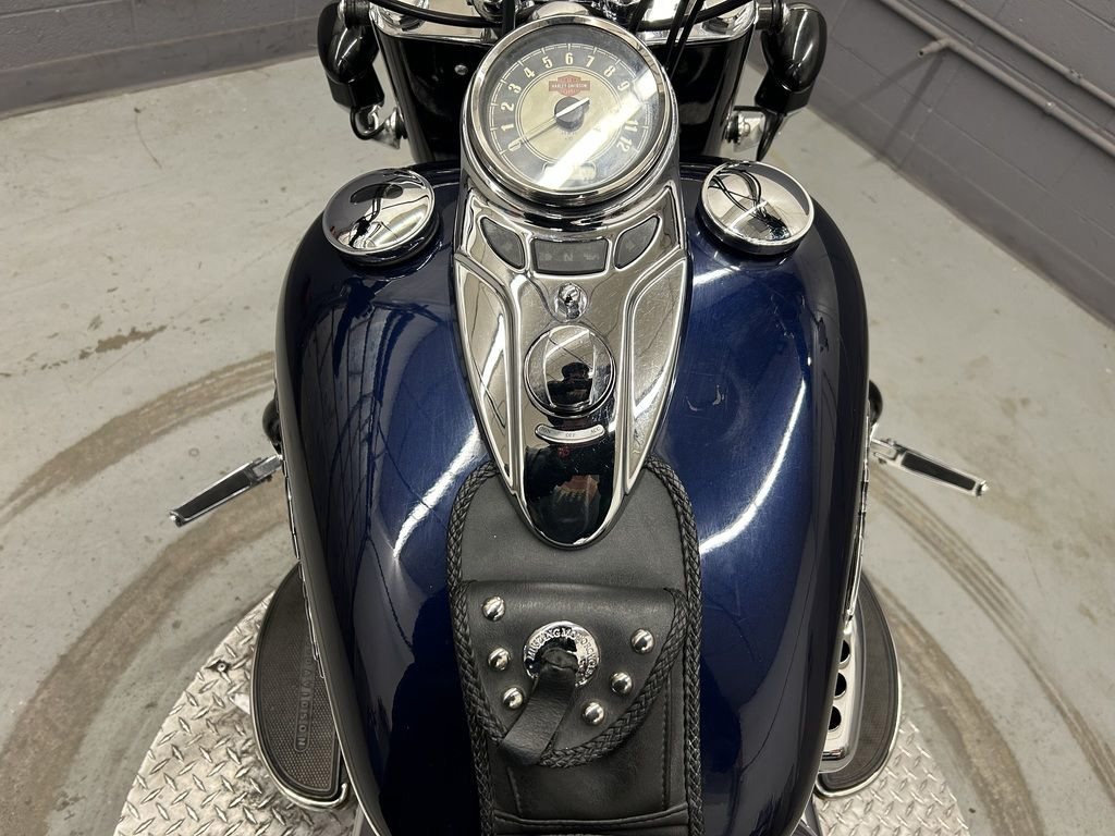 If you want a comfortable bike but love that rigid-suspension look, you've come to the right bike. We've kept all the modern comforts where they belong—below the surface of a rad, vintage-looking bike. You get the classic lines of a vintage "hardtail" frame with the horizontal rear shocks hidden in the guts. It's a signature rigid look, and you'll only find it on a Softail® model.