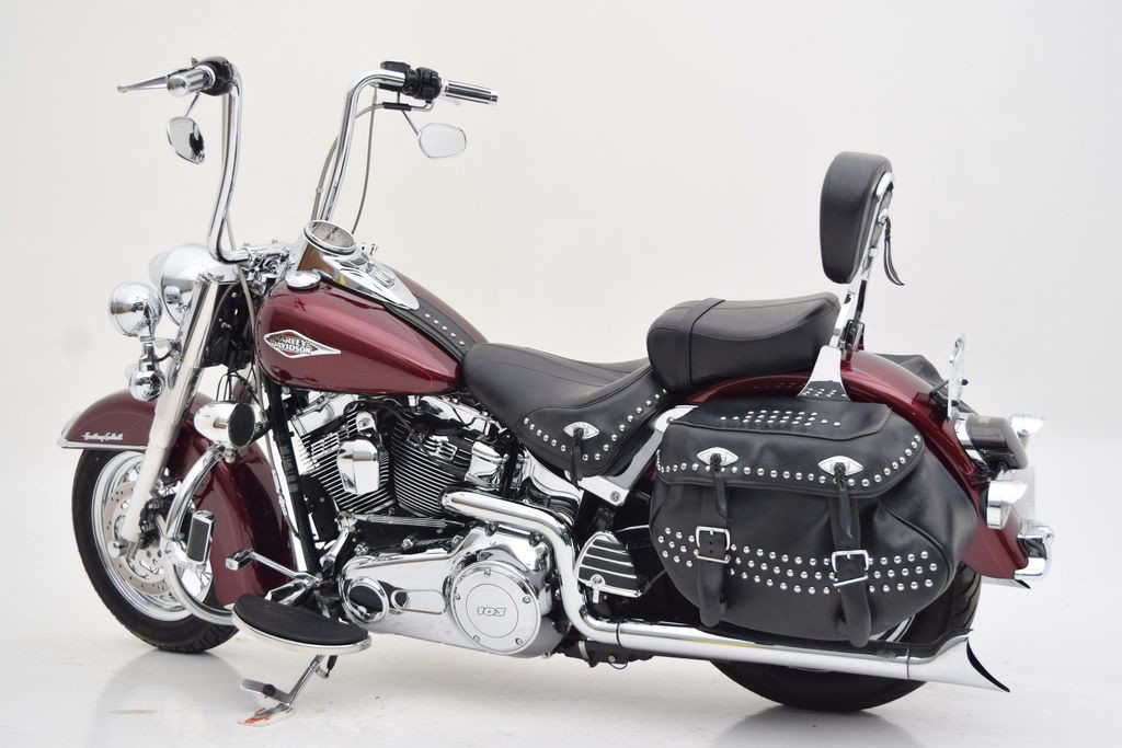 This 2014 Harley-Davidson® FLSTC Heritage Softail® Classic blends timeless cruiser style with modern comfort and performance. Finished in striking Mysterious Red paint, this bike shows 24,302 miles and has been tastefully upgraded to enhance both sound and ride quality. Power comes from Harley-Davidson’s proven V-twin engine, delivering smooth torque and that unmistakable rumble, amplified by an upgraded Vance & Hines exhaust system. Rider comfort and control are improved with upgraded handlebars, grips, and foot controls, making long rides more enjoyable. Additional features include highway pegs for relaxed cruising, a passenger backrest for added two-up comfort, and an engine guard equipped with speakers to keep your favorite music along for the ride. Classic styling cues like wide fenders, chrome accents, and nostalgic lines make this Heritage Softail Classic a standout wherever it goes. If you’re looking for a comfortable, great-sounding cruiser with iconic Harley-Davidson style, this Heritage Softail Classic is ready to ride.