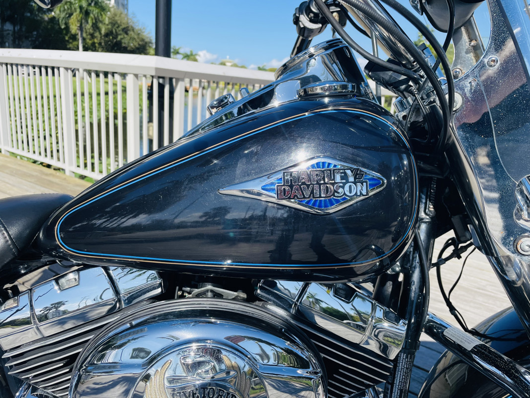 Softail models were introduced in 1984 with a newly patented design from one of the Harley engineers. The hidden suspension allows clean lines and over the years the design has been improved. The Heritage line is a timeless classic look that no matter when you look at it just does not get old. Wide swooped fenders and studded bags, big seat and comfort all around makes this bike a looker all the time.