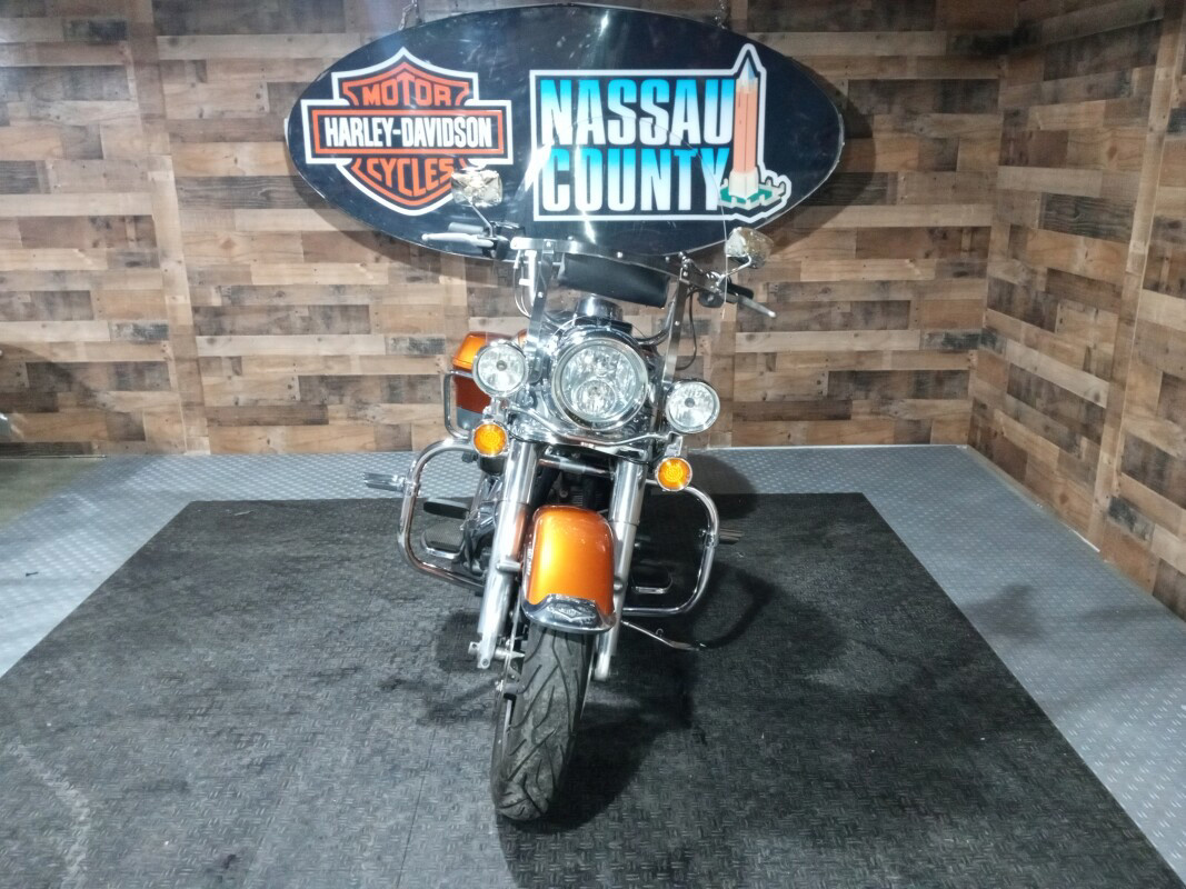 The 2014 Road King Classic takes the idea of Classic to the most modern place it's ever been. As part of Project RUSHMORE, it has been redesigned for 2014 to make the ride better than it's ever been. The bike is powered with a new rubber-mounted high output Twin Cam 103 engine that gives you more power for passing, hill-climbing and performance when carrying luggage or a passenger. It also has a new anti-lock braking system (ABS) with linked brakes for optimum braking in all conditions. New Dual Halogen headlamps and fog lamps improve visibility. There are new gauges that are easier to read. The leather-wrapped injection molded hard saddle bags maintain their shape over time and the latches have been redesigned for easy one-hand operation. A detachable windshield and air adjustable touring rear suspension, give the choice for a variety of riding feels.