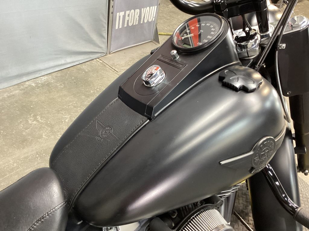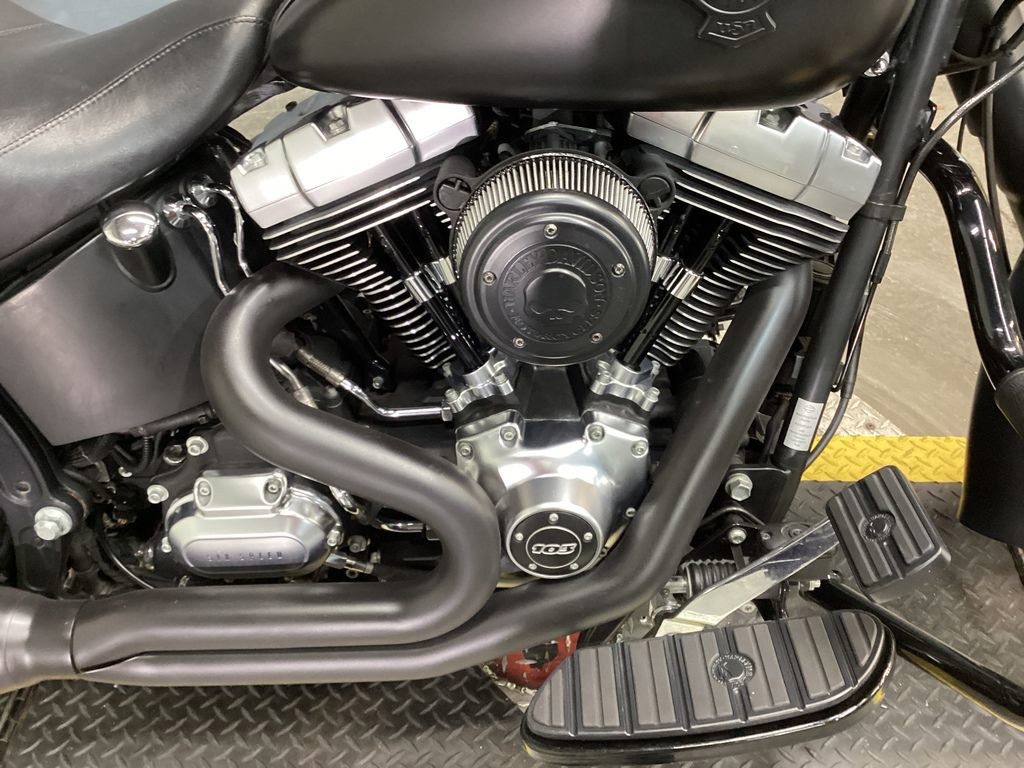 The 2014 Harley-Davidson® Softail® Fat Boy® Lo FLSTFB model has all the features you expect on custom Harley® bike. Hearkening to the 'hardtail' choppers of the '60s and '70s, the Fat Boy Lo model is one of the custom Harley® motorcycles that keeps that heritage alive more than forty years later. And this special edition shows a darker side of the original 'fat custom' bike—laid-back and blacked-out with an unmistakable profile on the road. The Harley® Fat Boy Lo model features a powerful air-cooled Twin Cam 103™ Harley® engine with 6 speed cruise drive transmission, providing more performance power for passing, hill-climbing, and riding with a passenger and luggage.