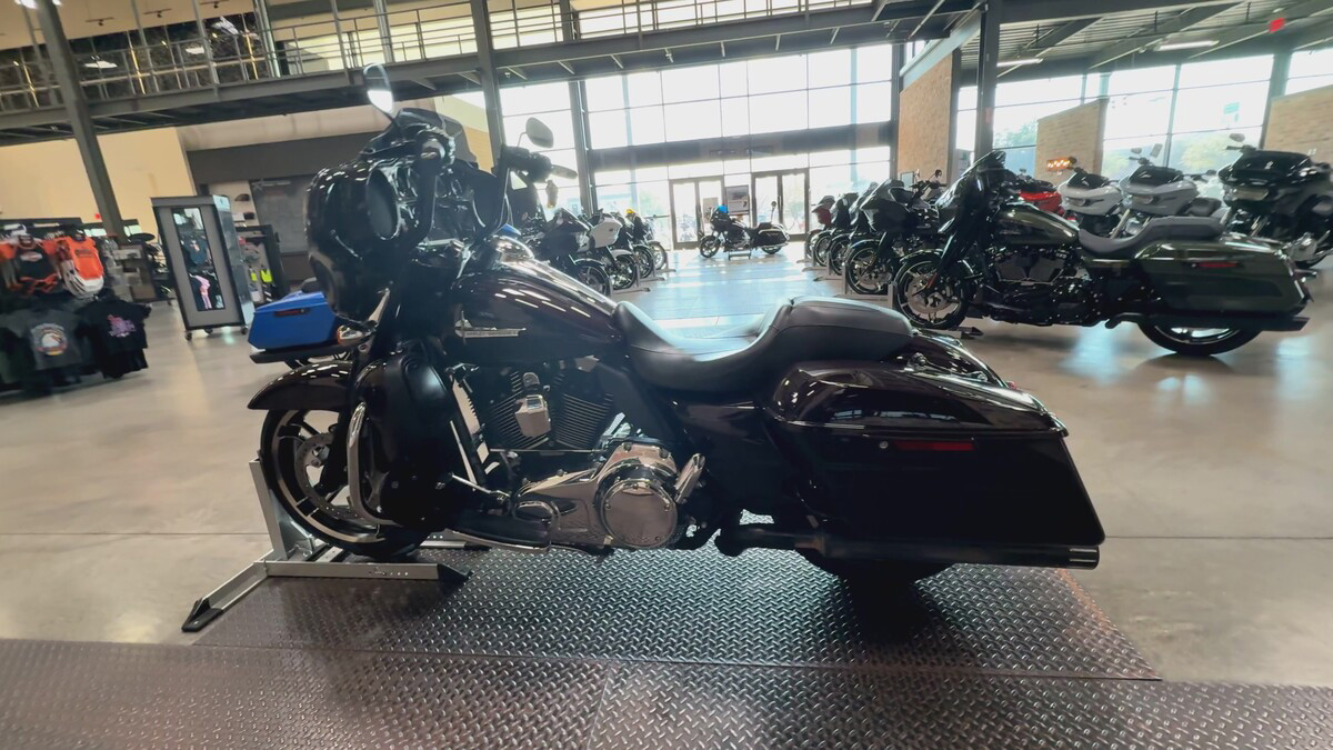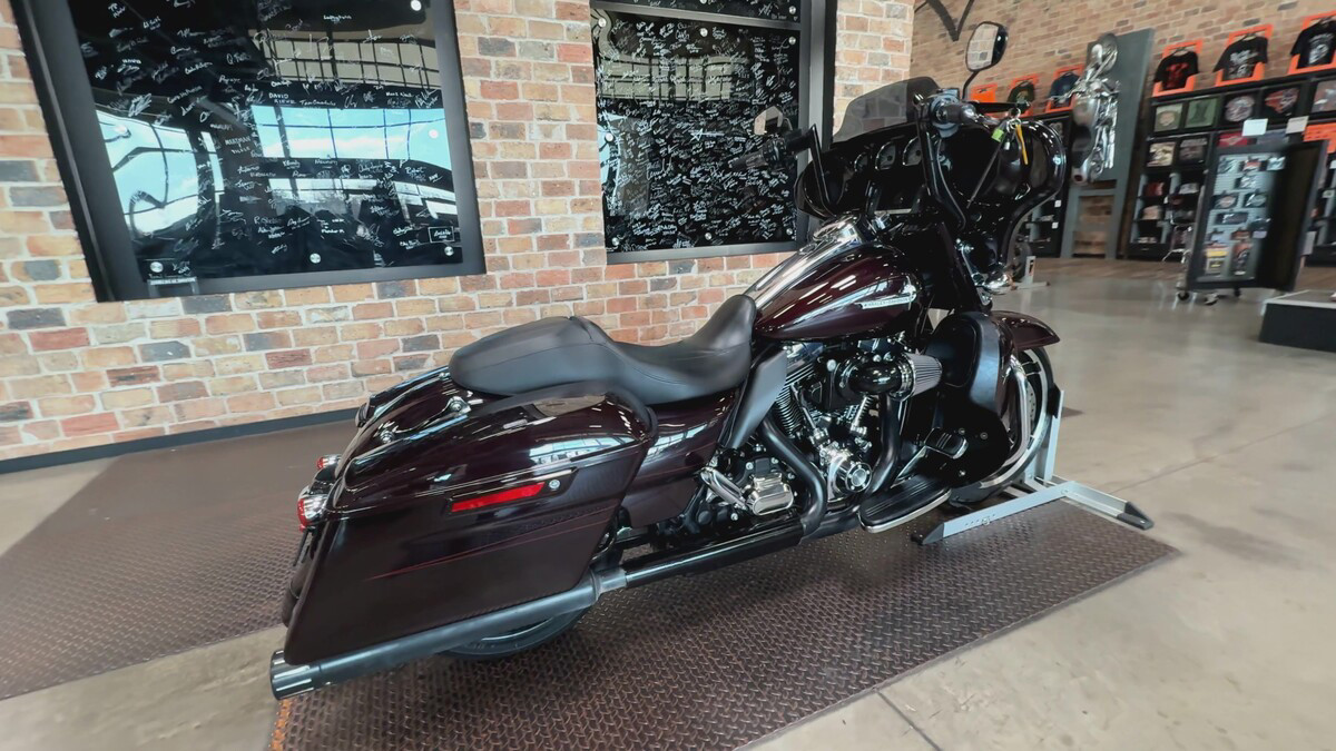 This H-D beauty boasts an exterior finished in a stunning Black and Cayenne with Pinstriping, adding a touch of boldness and flair to its timeless design. The Touring model is built for those who crave long rides and endless journeys, making it the perfect companion for any road trip enthusiast.