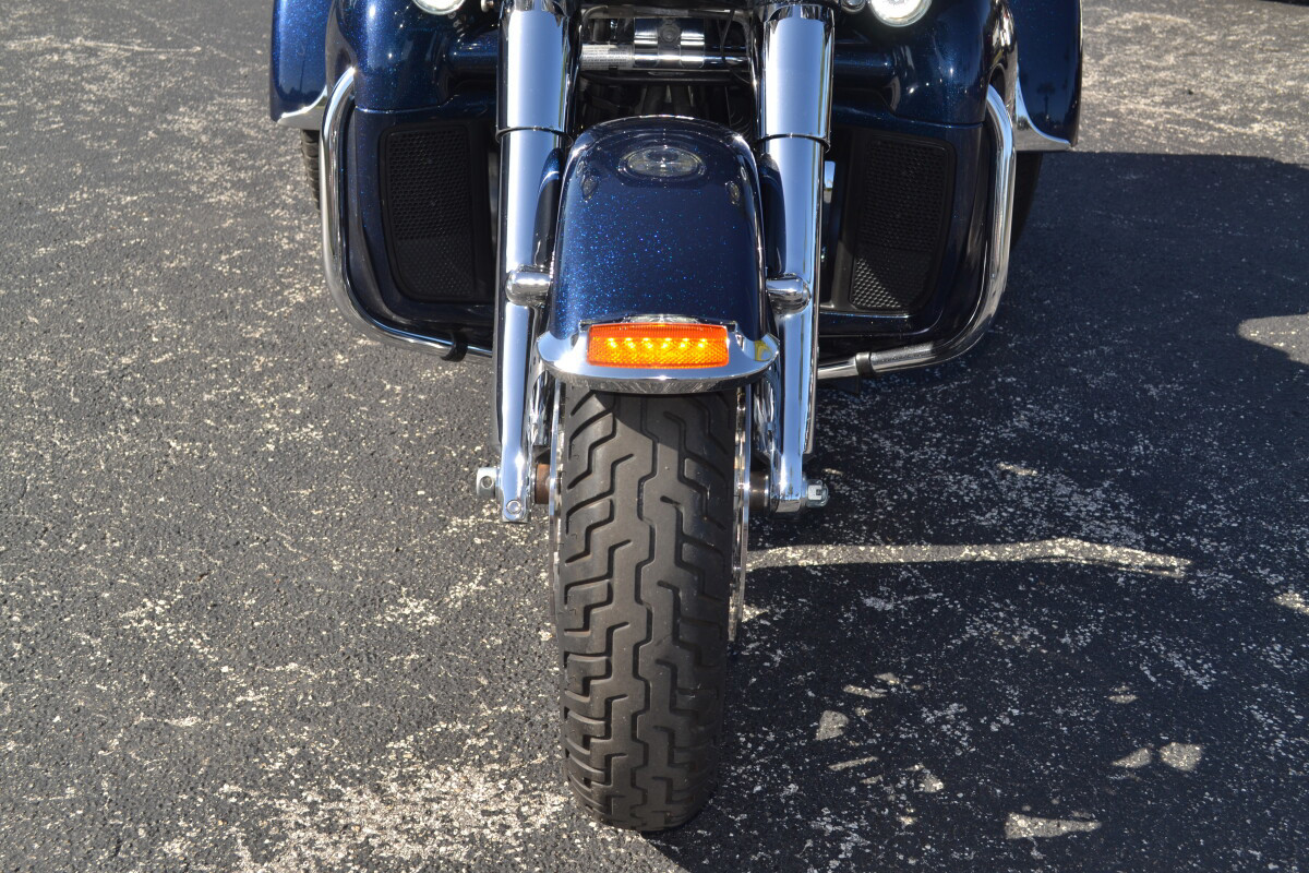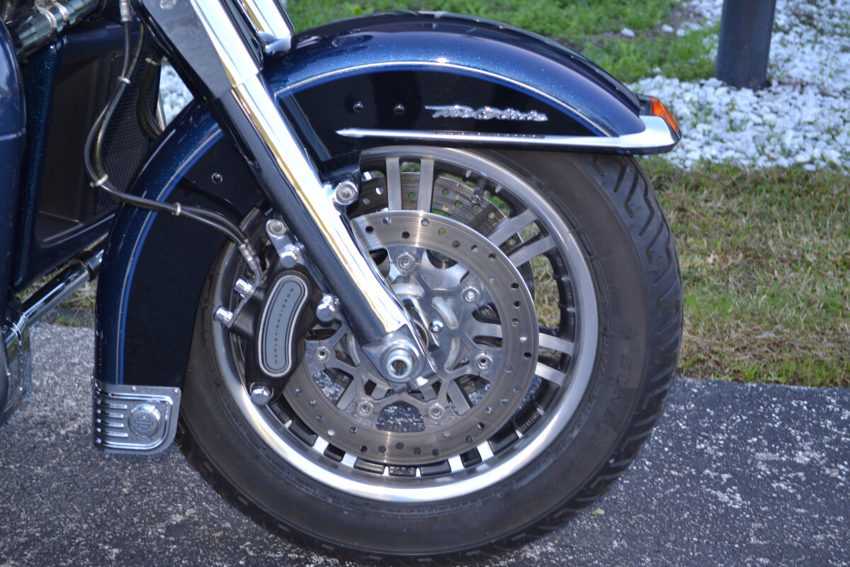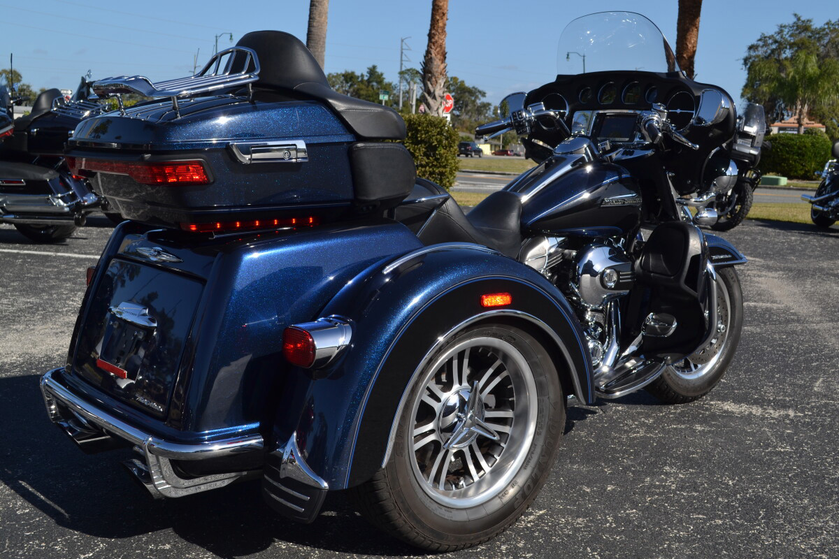 The new for 2014 Tri Glide Ultra Classic provides long-haul, 3-wheel touring comfort and confidence. As part of Project RUSHMORE, it features the new twin-cooled high output Twin Cam 103 engine, built to deliver more power for passing, climbing hills and carrying a passenger and luggage. This is combined with Six-Speed Cruise Drive transmission for low rpm at highway speeds. The rear-to-front linked brakes offer maximum stopping power while the new Daymaker LED headlamp and LED fog lamps improve visibility. The new Boom Box 6.5 infotainment system features a 6.5 full-color touch screen and the loudest, clearest speakers ever in a Harley-Davidson motorcycle. The luggage spaces have been redesigned with more space inside, a sleek new look outside and new latches for one handed operation. The iconic batwing fairing minimises head buffeting without losing its distinctive, authentic Harley-Davidson style. Designed and built as a single unit with an integrated and seamless look, it is full of all the features that you could need and want in a Trike.