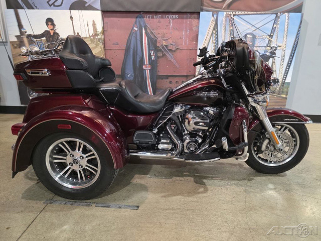 2014 Harley-Davidson® Tri Glide® UltraHow much motorcycle can you fit on three wheels? One look at the new Tri Glide® Ultra Classic and you'll have your answer.The 2014 Harley-Davidson® Trike motorcycles provide you long-haul comfort and confidence. As part of Project RushMore, for 2014 the Harley® Tri Glide® Ultra has been totally redesigned. The new twin-cooled high output Twin Cam 103™ engine is built to deliver more power for passing, climbing hills and carrying a passenger and luggage. There are new rear-to-front linked brakes for maximum stopping power. And the new Daymaker LED headlamp and LED fog lamps let you see farther than ever before. The new Boom Box 6.5 infotainment system features a 6.5 in full-color touch screen and the loudest, clearest speakers ever in a Harley-Davidson® motorcycle. The luggage spaces have been redesigned with more space inside, a sleek new look outside and new latches that can be operated with one hand. The iconic batwing fairing has also been changed to reduce head buffeting without losing its distinctive, authentic Harley-Davidson® style. Features May Include:Project RUSHMORE - EngineAs every rider knows, the engine is at the heart of the experience of riding a motorcycle. The amount of torque and horsepower it delivers over the RPM range is in direct proportion to the feeling it gives you when you roll on the throttle. We know what riders want from a motorcycle engine because we’ve been building them for 110 years. Project RUSHMORE gave us the opportunity to dial it in just right. We conducted thousands of road tests with real riders giving us feedback to build the next iteration of the legendary Harley-Davidson® engine. The consensus was: We want more. Pure Harley-Davidson® StylingFeast your eyes on the Twin Cam 103™ engine and there's no mistaking its roots. This is authentic Harley-Davidson® style through and through with an attention to detail you won't find from any other motorcycle company. Black powder-coated cylinders and cylinder heads with machined cooling fin tips are topped off with chrome rocker covers, while chrome pushrods highlight the iconic V-Twin. It's a jewel machined out of metal. Pure. Dripping with power.Six-Speed Cruise Drive® TransmissionYou want a ride that rumbles—not begs for mercy—when you lean on it a little. The Six-Speed Cruise Drive® transmission provides smooth, quiet shifting and reduces engine speed on the highway, so you get a better match between engine turnover and road speed. It's a rare ride when a bike responds like this, and a low growl goes a long way when you're opening up the road ahead.Twin Cam 103™ Engine HeritageThe knowledge of what makes an engine truly move a rider runs deep at The Motor Company, and it was put to good use when we created the Twin Cam 103™ engine. We worked to perfect every cubic inch, pushing design and technology forward. And we did it all without compromising one bit of Harley-Davidson®'s unique styling. Evolved, yet carrying on the legacy of the Flathead, Knucklehead, Panhead, Shovelhead, Evolution®, Twin Cam 88® and Twin Cam 96™ engines that came before. The performance and durability are a direct result of the untold miles logged on the V-Twin since 1909, and the proud heritage that comes from a century's worth of commitment to life on two (or three) wheels.Twin Cam 103™ Engine InnovationFire up the air-cooled, rubber-mounted Twin Cam 103™ engine and feel the low-end torque unleashed for a smooth ride. Thanks to the lightweight piston design, delivery of the added power is more refined than ever. Then put your foot on the shifter and feel how the engine and Six-Speed Cruise Drive® transmission were designed to work together. Six speeds. A strong driveline and strong internal parts.