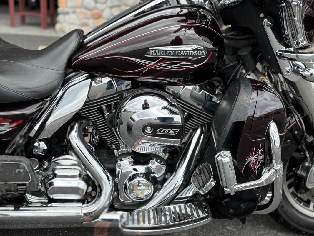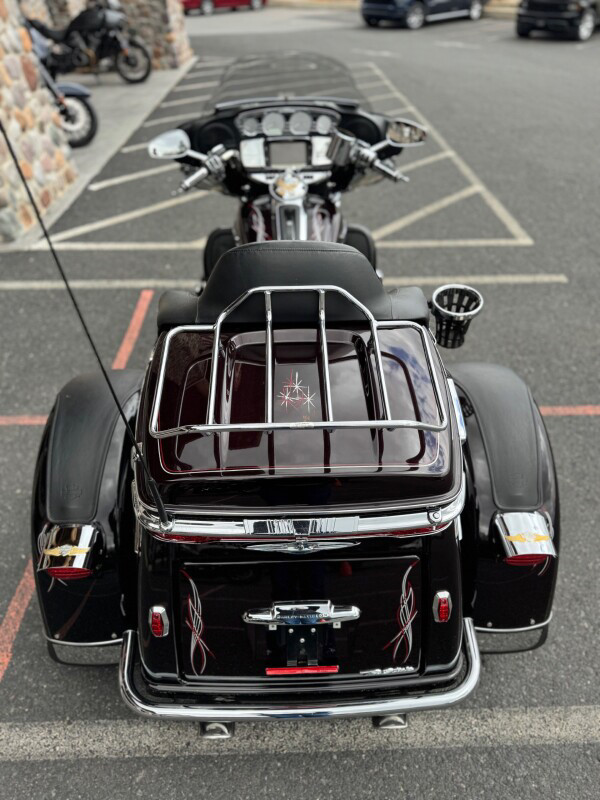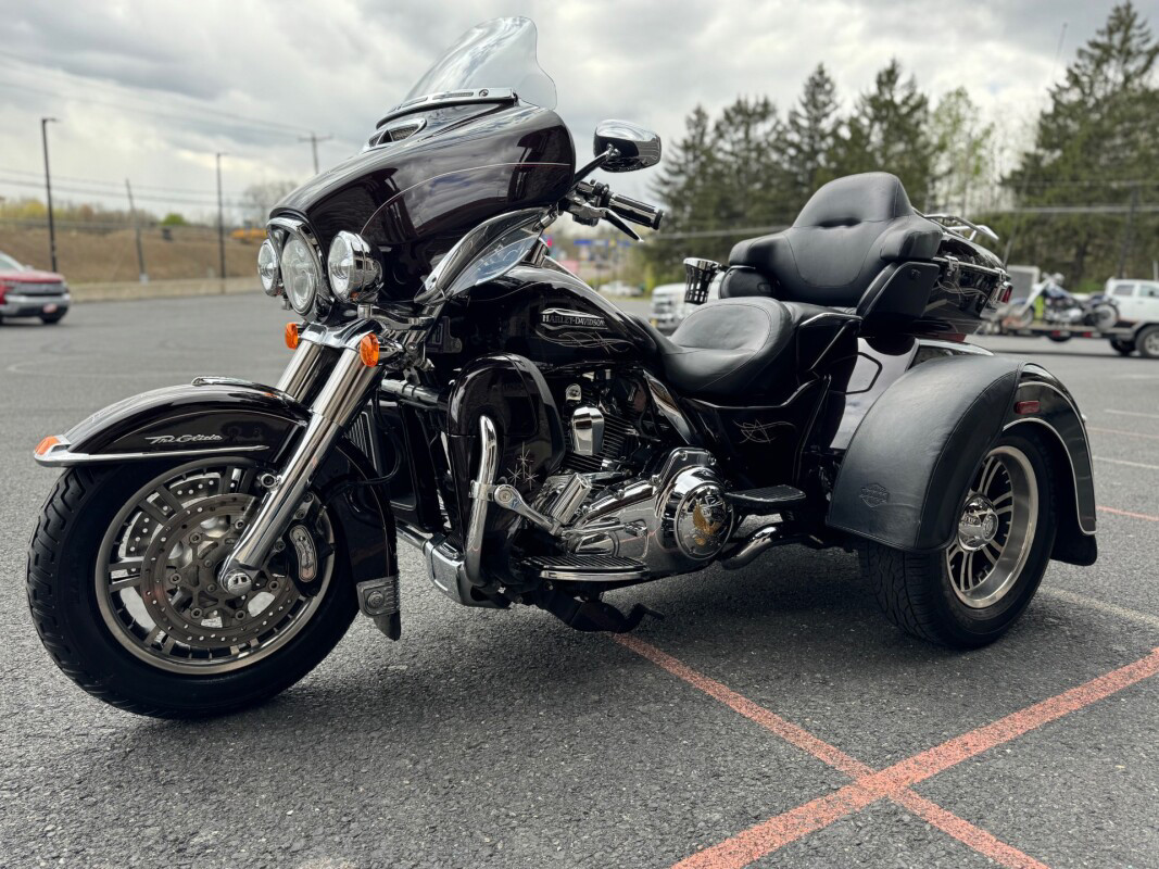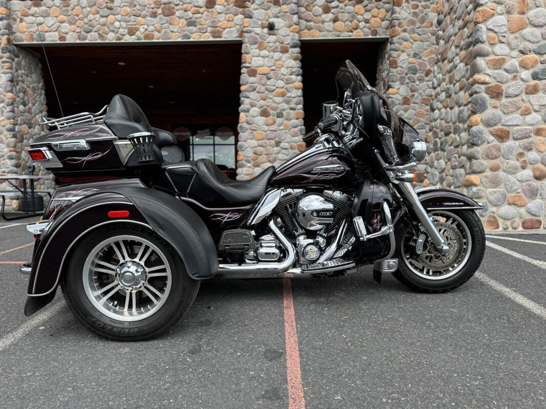 The new for 2014 Tri Glide Ultra Classic provides long-haul, 3-wheel touring comfort and confidence. As part of Project RUSHMORE, it features the new twin-cooled high output Twin Cam 103 engine, built to deliver more power for passing, climbing hills and carrying a passenger and luggage. This is combined with Six-Speed Cruise Drive transmission for low rpm at highway speeds.  The rear-to-front linked brakes offer maximum stopping power while the new Daymaker LED headlamp and LED fog lamps improve visibility. The new Boom Box 6.5 infotainment system features a 6.5 full-color touch screen and the loudest, clearest speakers ever in a Harley-Davidson motorcycle. The luggage spaces have been redesigned with more space inside, a sleek new look outside and new latches for one handed operation. The iconic batwing fairing minimises head buffeting without losing its distinctive, authentic Harley-Davidson style. Designed and built as a single unit with an integrated and seamless look, it is full of all the features that you could need and want in a Trike.