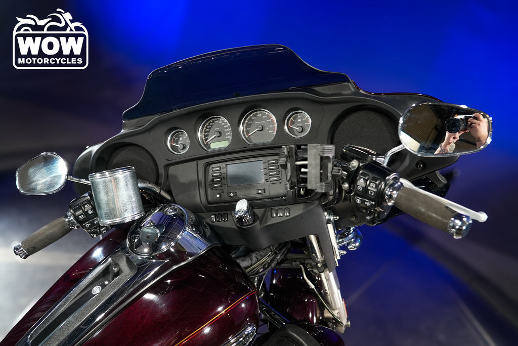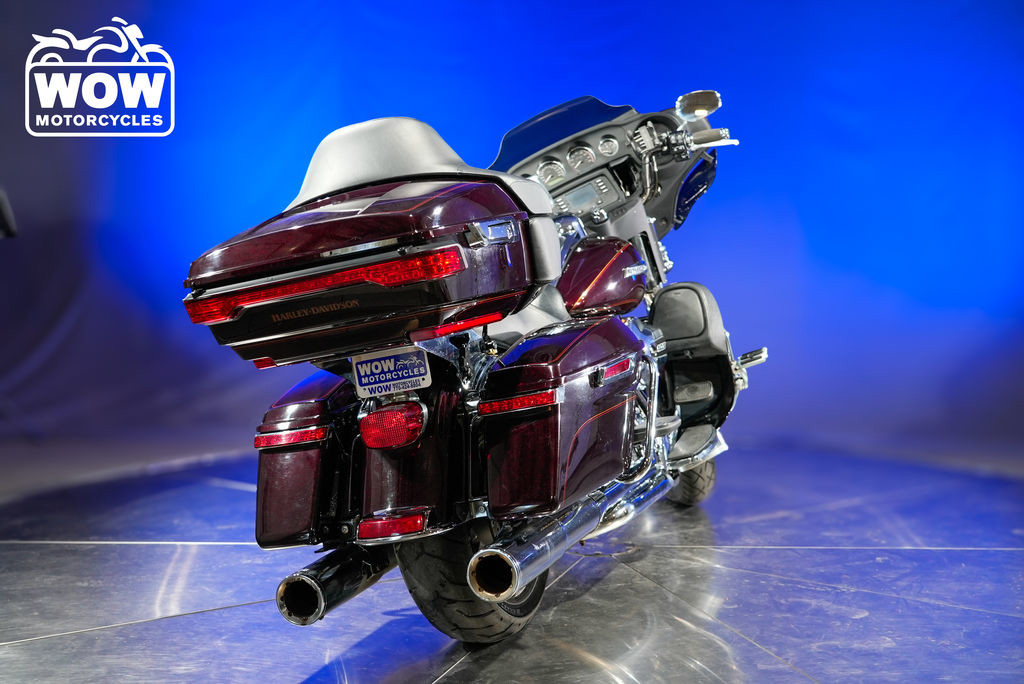 The 2014 Harley-Davidson FLHTCU Electra Glide Ultra Classic is the benchmark for luxury long-distance touring, enhanced by Project RUSHMORE upgrades including a powerful air-cooled High Output Twin Cam 103 engine (1690cc) for superior low-end torque and passing power. Iconic Batwing fairing with Splitstream vent reduces buffeting, while Reflex Linked Brakes with ABS, Daymaker LED headlight and fog lamps, and electronic cruise control ensure confident, safe rides.Premium comforts abound: Boom! Box 4.3 infotainment with Bluetooth, 25-watt speakers, spacious Tour-Pak and saddlebags with one-touch latches, a 6-gallon tank, and ergonomic design for all-day rider/passenger bliss. A timeless grand tourer blending classic Harley style with modern reliability and tech.