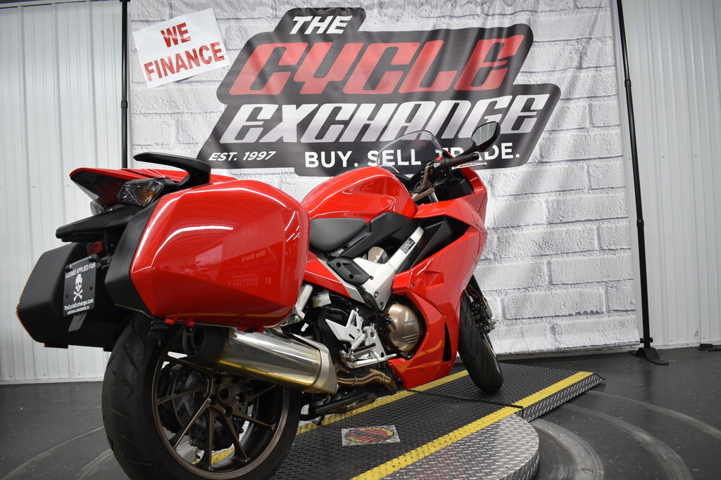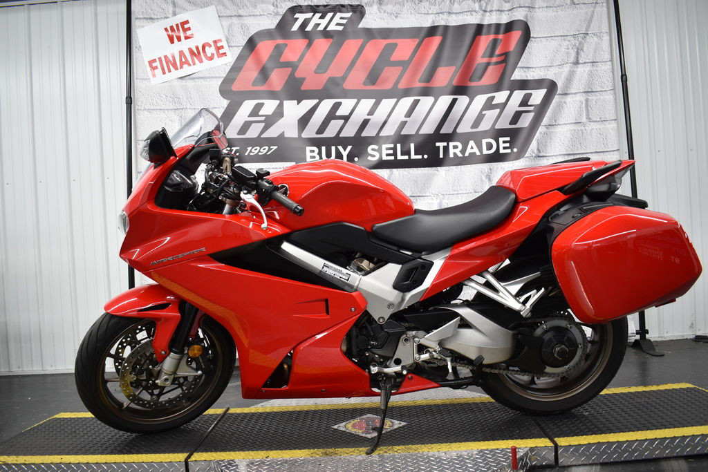 The Interceptor®'s 782cc V-4 VTEC engine has new fuel-injection mapping for better low-end torque feel. It includes adjustable seat height to better fit a range of riders, new front-mount radiator for a slimmer profile, radial-mount front brakes, and all-new side-muffler, wheels and Pro-Arm® swingarm. There’s even a Deluxe model for 2014 with features like traction control, Anti-Lock Brakes, self-cancelling turn signals, a centerstand and heated grips.