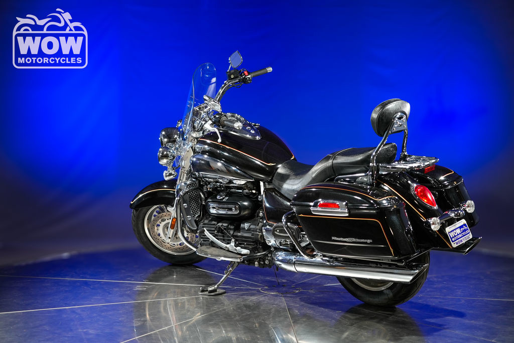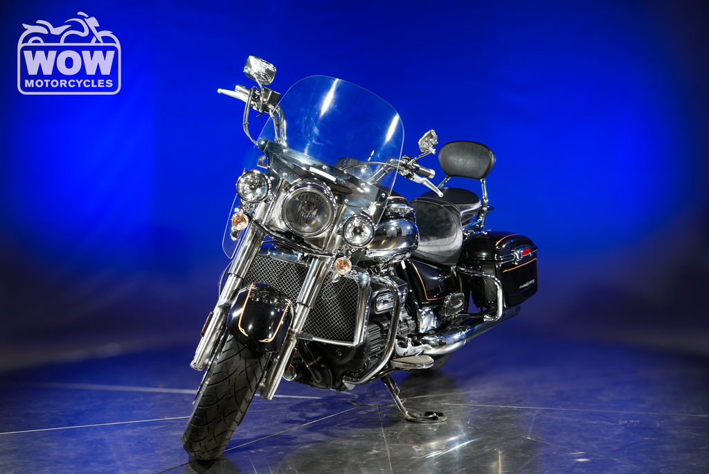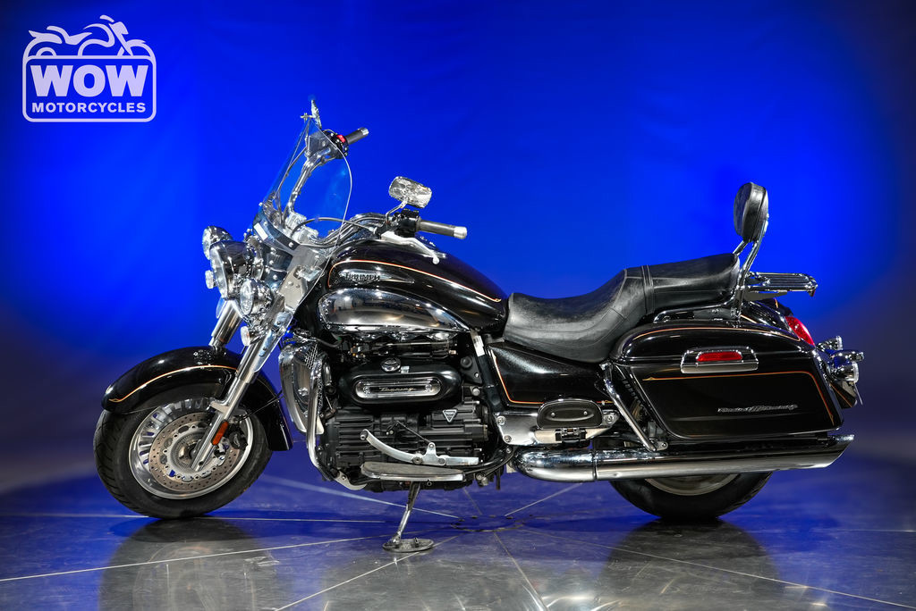 2014 Triumph Rocket III","With its 2,294cc three-cylinder engine, the Triumph Rocket III stands as the largest displacement motorcycle in production for its time, delivering unparalleled torque and power for a thrilling ride. Its bold, muscular design captures the essence of a classic cruiser while incorporating modern engineering for smooth handling and comfort. The inline triple engine provides a distinctive roar and effortless acceleration, making it a standout in the cruiser segment. The bike’s low seat height and ergonomic design cater to long-distance comfort, while its distinctive styling, including chrome accents and a robust frame, appeals to riders seeking both performance and presence. Specifications: Engine: 2294cc, Liquid-cooled, DOHC, in-line 3-cylinder Bore x Stroke: 101.6 x 94.3mm Compression Ratio: 8.7:1 Max Power: 148 hp @ 5,750 rpm Max Torque: 163 lb-ft @ 2,750 rpm Transmission: 5-speed Final Drive: Shaft Front Suspension: Kayaba 43mm upside-down forks, 120mm travel Rear Suspension: Kayaba chromed spring twin shocks with 5-position adjustable preload, 105mm rear wheel travel Front Brake: Twin 320mm floating discs, Nissin 4-piston fixed calipers Rear Brake: Single 316mm disc, Brembo 2-piston floating caliper Front Tire: 150/80 R17 Rear Tire: 240/50 R16 Wheelbase: 66.7 in Seat Height: 29.5 in Wet Weight: 807 lbs Fuel Capacity: 6.3 US gal"