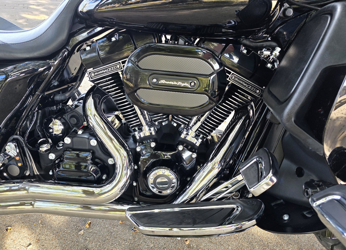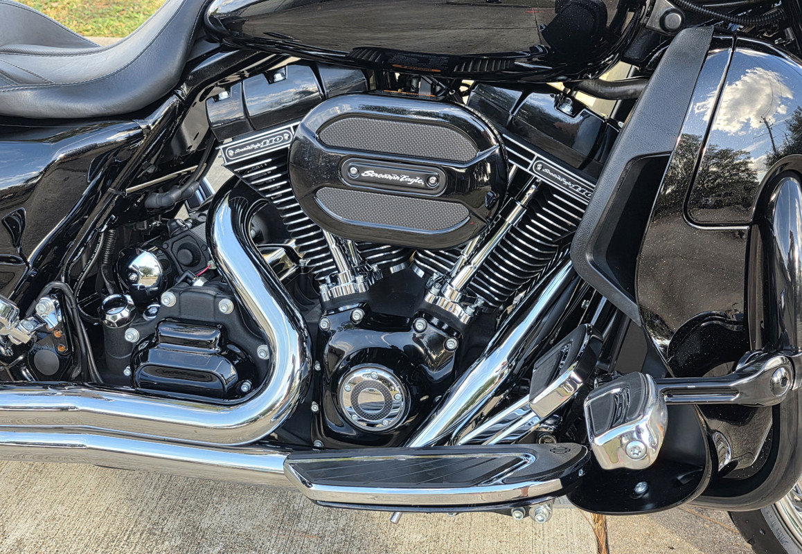 • Screamin’ Eagle Twin-Cooled™ High Output Twin Cam 110™ Granite powder-coated powertrain
