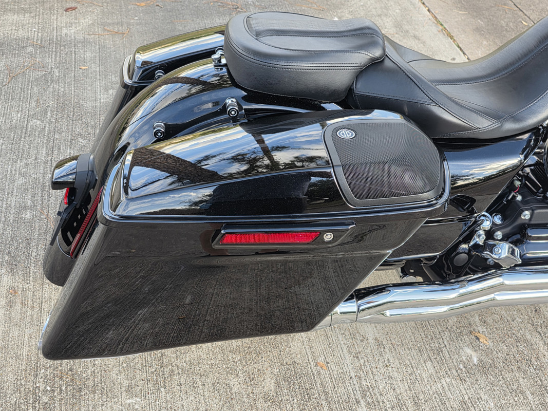 • Injection-molded extended saddlebags with integrated speakers in lids