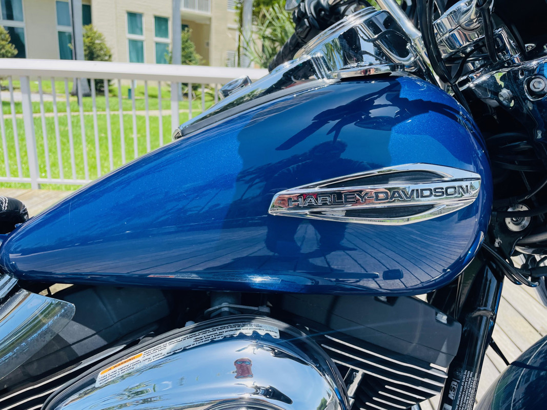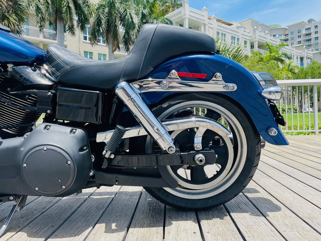 Beautiful Dyna Switchback finished in the absolute stunning Superior Blue. The bike has some minor scratches here and there but overall, a good looking bike. There is a dent on the front fender, dented without paint cracking. The bike runs great and has brand new tires installed. The batwing fairing was added along with a radio/Bluetooth and JVC speakers. The fairing can easily be removed to bring the bike back to its original condition.