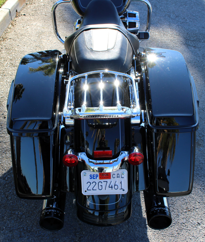 Vance & Hines head pipes, Bassani slip-ons, Screamin’ Eagle air cleaner, luggage rack, and Twin Cam 103™ touring power.