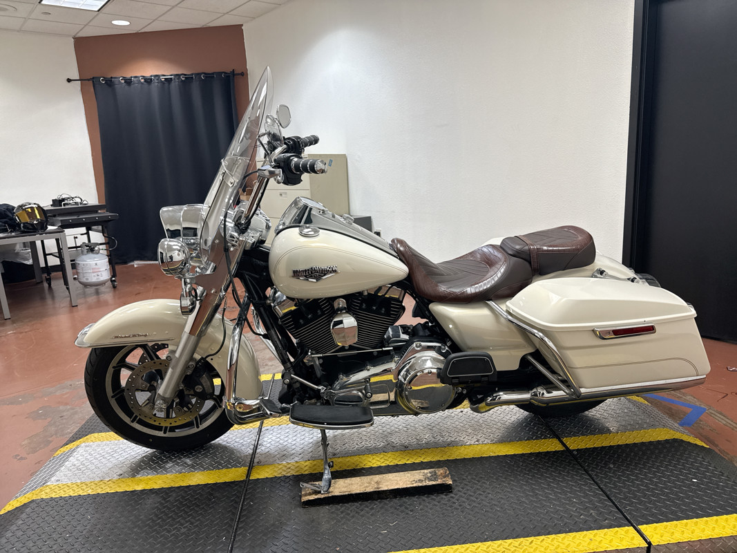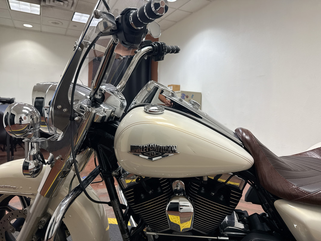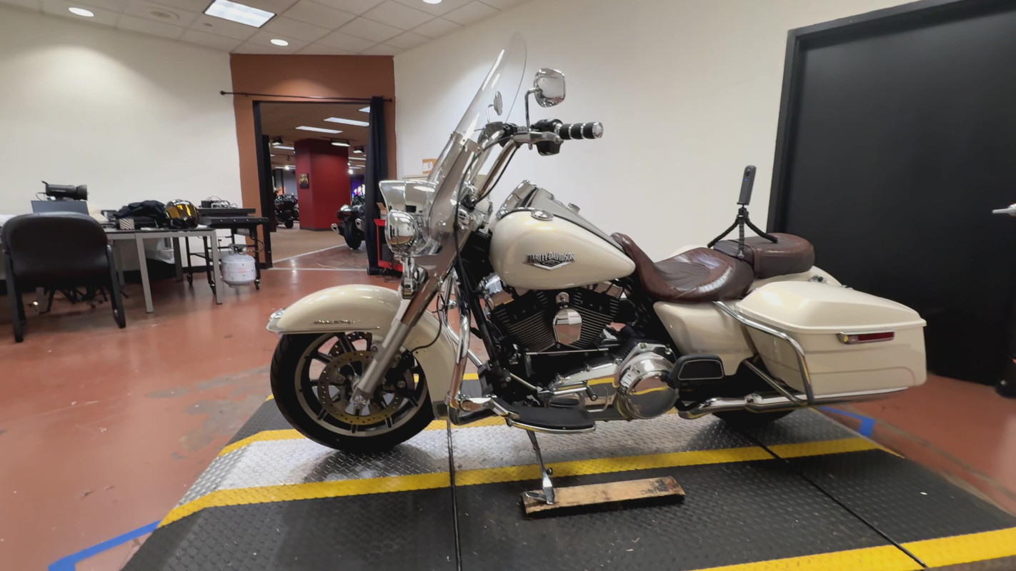 2015 Harley-Davidson Road King Touring motorcycle in a striking Morocco Gold with pinstripe. This used Harley delivers classic touring cruiser styling, a confident highway presence, and a timeless look that riders love for long-distance rides and daily cruising. ???
