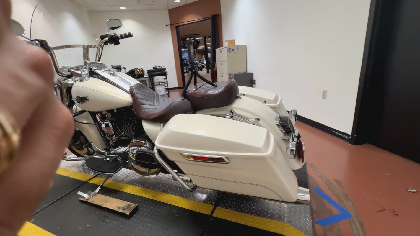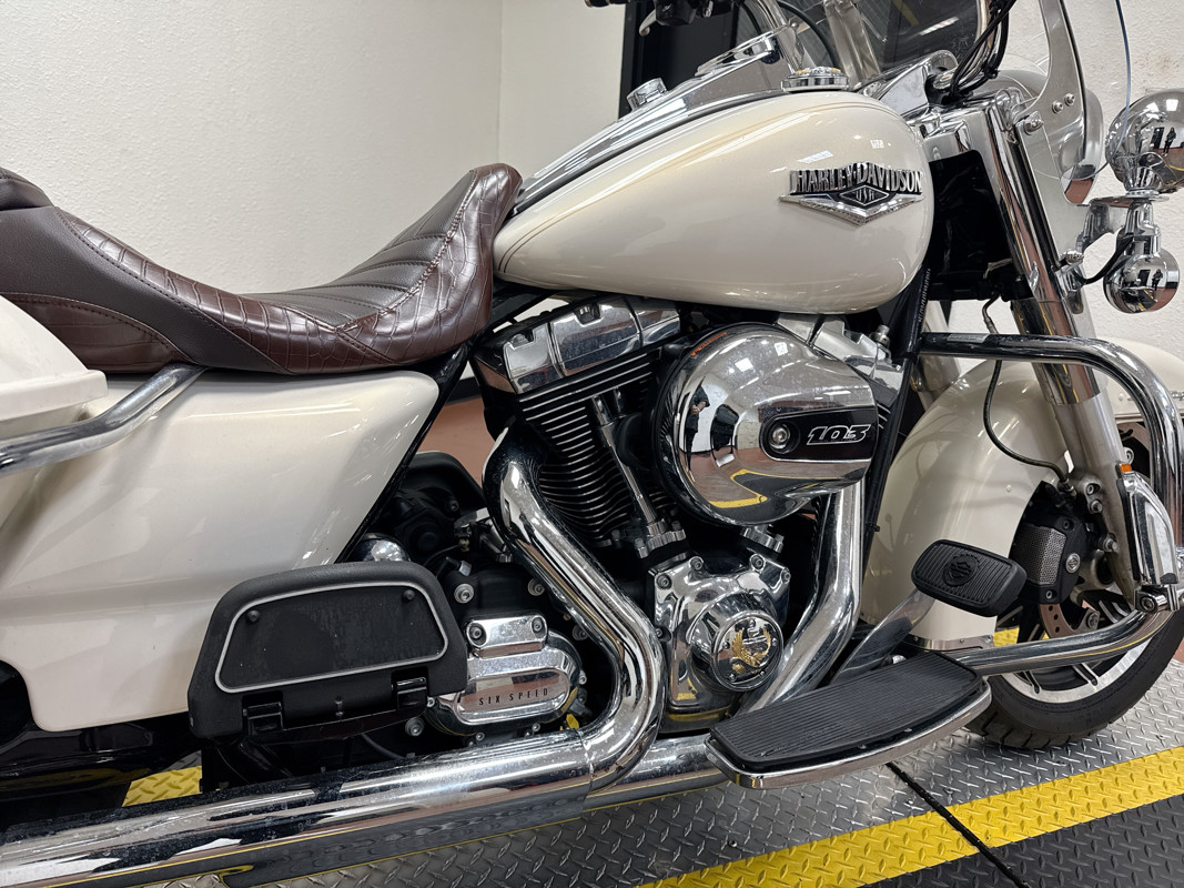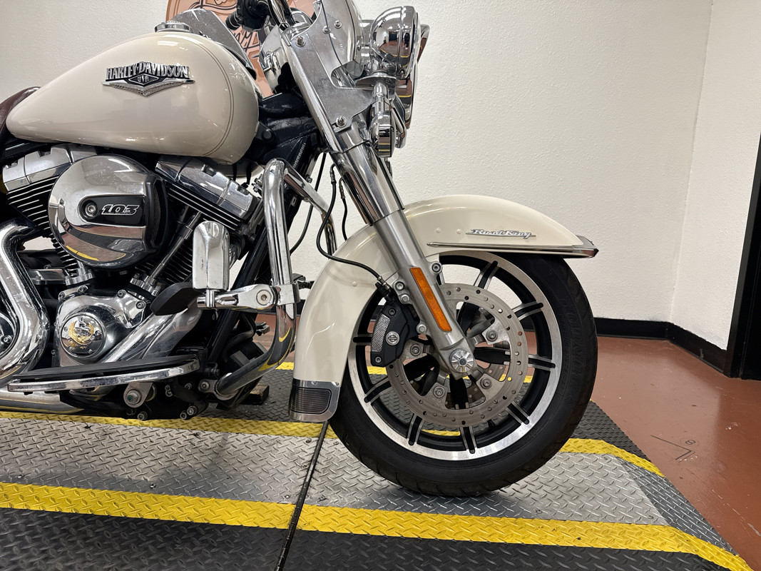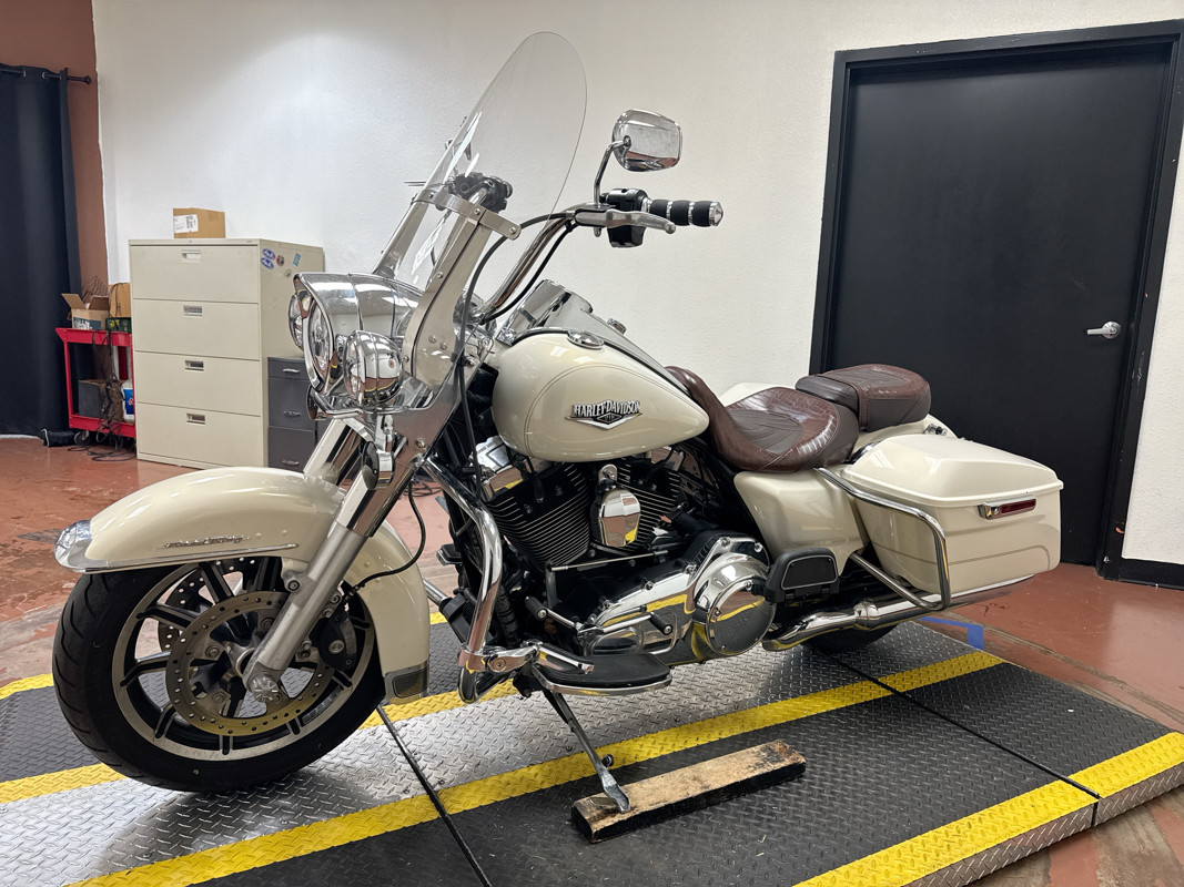 2015 Harley-Davidson Road King Touring motorcycle in a striking Morocco Gold with pinstripe. This used Harley delivers classic touring cruiser styling, a confident highway presence, and a timeless look that riders love for long-distance rides and daily cruising. ???