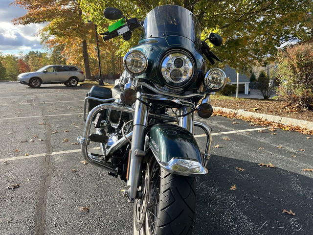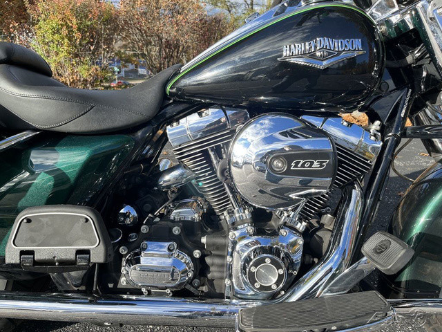 2015 Harley-Davidson® Road King®Timeless cruiser styling combined with all the features you need for the long haul. The Road King® motorcycle truly is the king of the road.Features May Include:Project RUSHMORE - ControlHere are some of the innovations Project RUSHMORE led to: the Reflex™ Linked Brakes with ABS, the Daymaker™ LED headlamps and fog lamps, brighter Tour-Pak® lighting, brighter turn signals, brighter brake lights, and a steering head with stiffer front forks. Locked-up tires are now history even when there’s wet pavement. We’ve made it feel even better to lean your way through a turn. Now you can see better. And we’ve made you more conspicuous to the cage-driving public. Because one thing we all agree on is this: bikes that work better make riders who ride better. Take a ride. See how good you can be.Air-Adjustable SuspensionWith air-adjustable suspension that comes standard, you can dial in your ride to accommodate heavier or lighter payloads, battle unexpected road conditions or simply set it to how you like to roll. The lighter the load, the softer you can go by decreasing the air pressure a bit, or increase the air pressure for a more firm ride. A convenient air valve is located between the saddlebag and rear fender for quick adjusting. It's all about rider and passenger comfort and setting your bike to fit your taste—the easy way.Brembo® BrakesConfidence. Control. High-performance dual disc Brembo® brakes offer consistent stopping power at all speeds. The 4-piston front and rear caliper with dual front rotor brake system is state of the art and top of the line. It's just another way The Motor Company puts a high level of detail into their bikes to give you peace of mind throughout your journey.Reflex™ Linked Brakes with Anti-lock Braking SystemNo doubt about it, there are times when you need to haul things down in a hurry. And you don’t get to pick those times. Or decide whether or not they occur when you’re on a flat, smooth, dry, perfect stretch of pavement. That’s why our touring models feature the Reflex™ Linked Brakes with ABS. ABS turns a locked-up front wheel or a rear wheel skid into a relic from riding’s history. And the front and rear brakes are electronically linked to provide exactly the right amount of brake to each tire no matter what the road condition is. No matter how good you are, this will make you a better rider.Twin Cam 103™ Engine InnovationFire up the Twin Cam 103™ engine and feel the low-end torque unleashed. Thanks to the lightweight piston design, delivery of the added power is more refined than ever. Then put your foot on the shifter and feel how the engine and Six-Speed Cruise Drive® transmission were designed to work together. Six speeds. A strong driveline and strong internal parts. Low routine maintenance. And a low cruising rpm couldn't feel better.