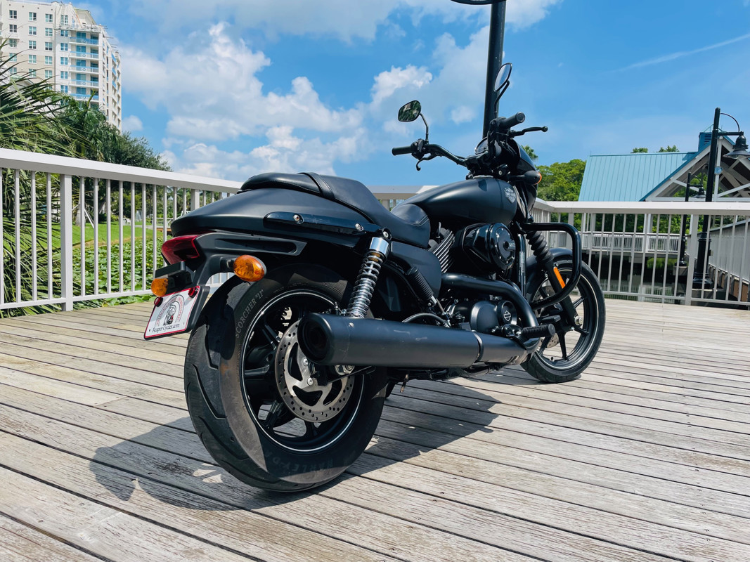 This is the larger version motor with 750cc and is a great bike to go everyday riding around town. Light and powerful the bike is easy to handle and maneuver. A perfect setup for a new rider to learn the road and traffic without having too much power to control. The 500 version of this bike was used as a school bike for many years and the 750 series is the ideal bike to bypass the Sportster 883 step and either go full Sportster or step into the big twin lineup. Also, a great fit as a run around town bike. This bike is in great condition with low miles and finished in denim black. It is mostly stock with very few blemishes. The clutch lever is slightly bend and the right rear turn signal is loose in its fitting. Watch the walk around video for details on condition of this bike. An amazing deal.