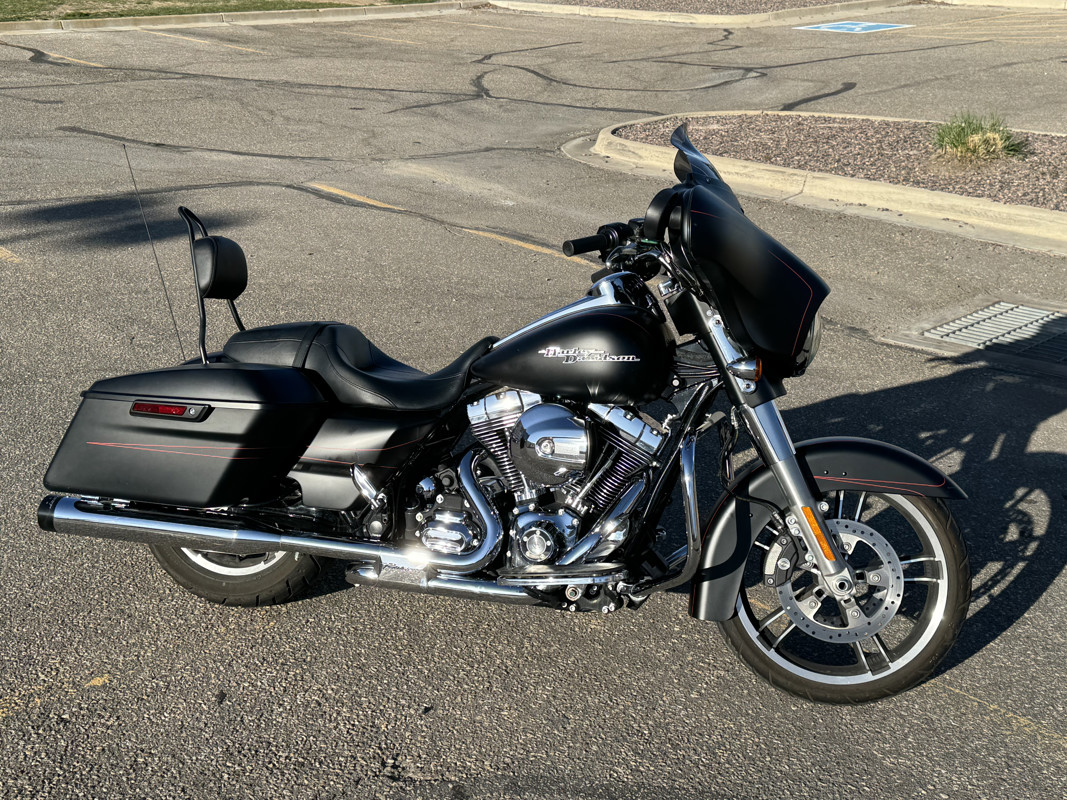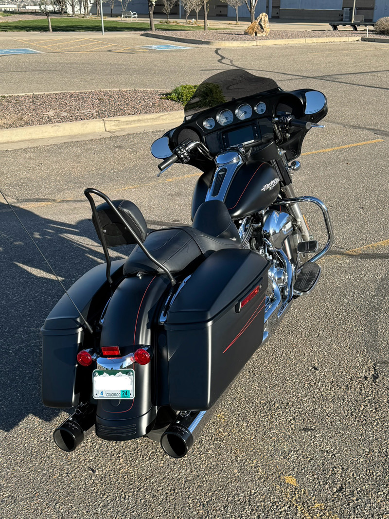2015 Harley Davidson Street Glide Special FLHXS matte black in fantastic condition - only 5,300 miles! 1,687 CC engine, Rinehart Racing exhaust, Klock Werks 6.5" dark smoke flare windshield, Top Hand Ventures sissy bar (removable), new battery purchased fall 2023, new tires purchased summer 2025. I am the original owner.