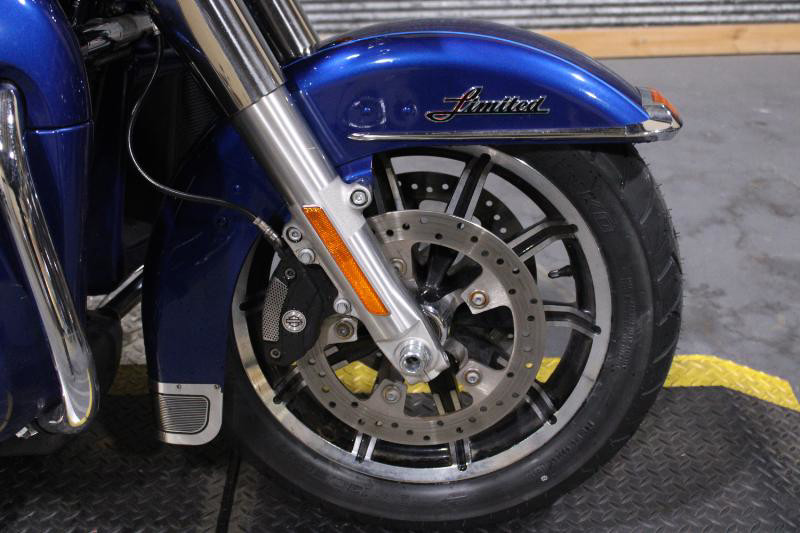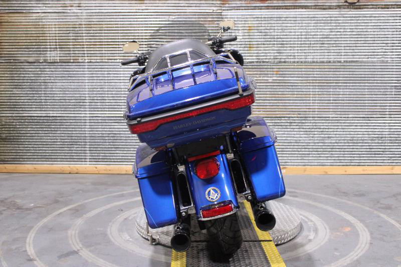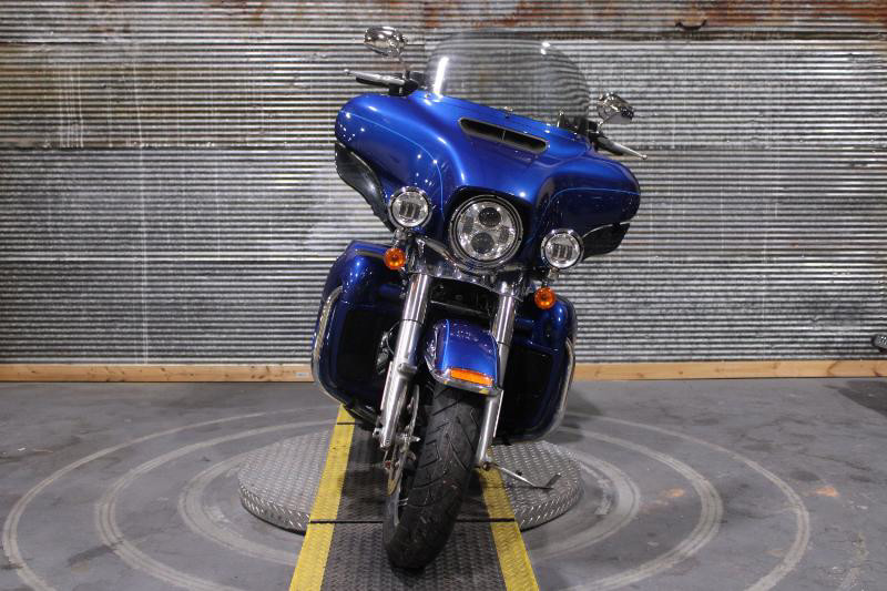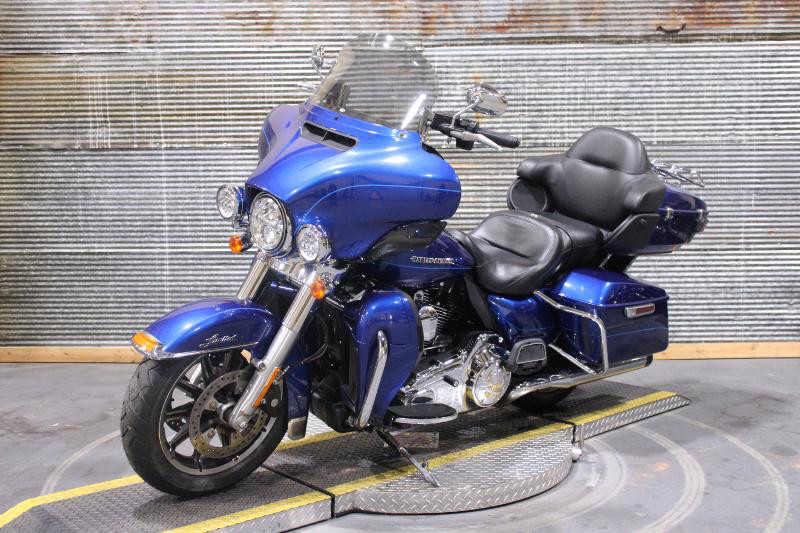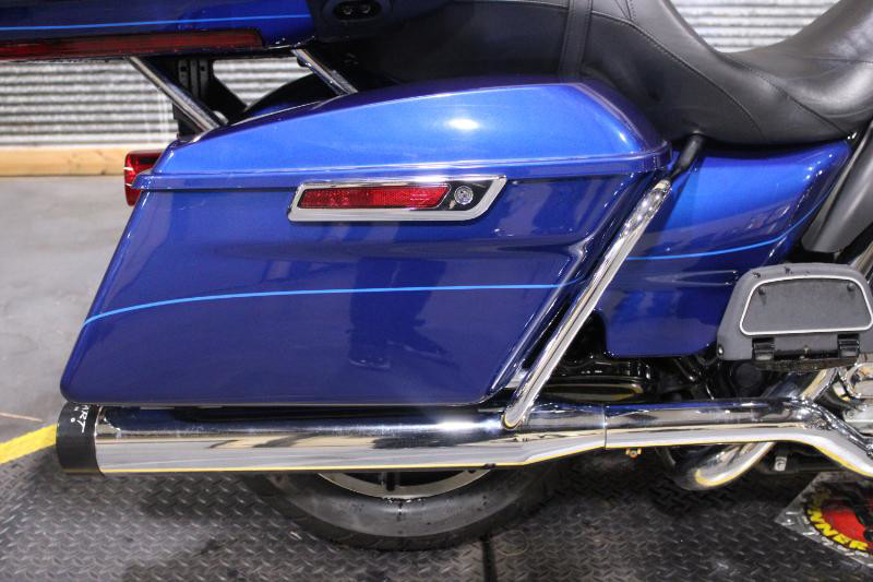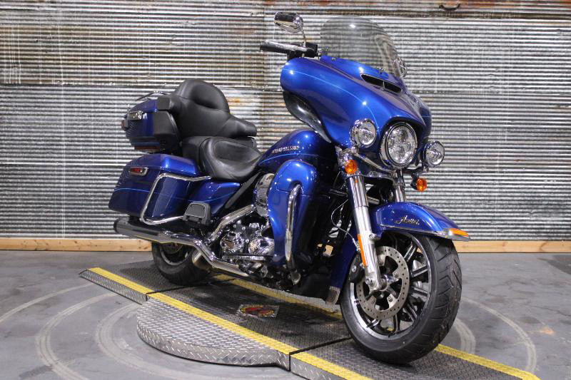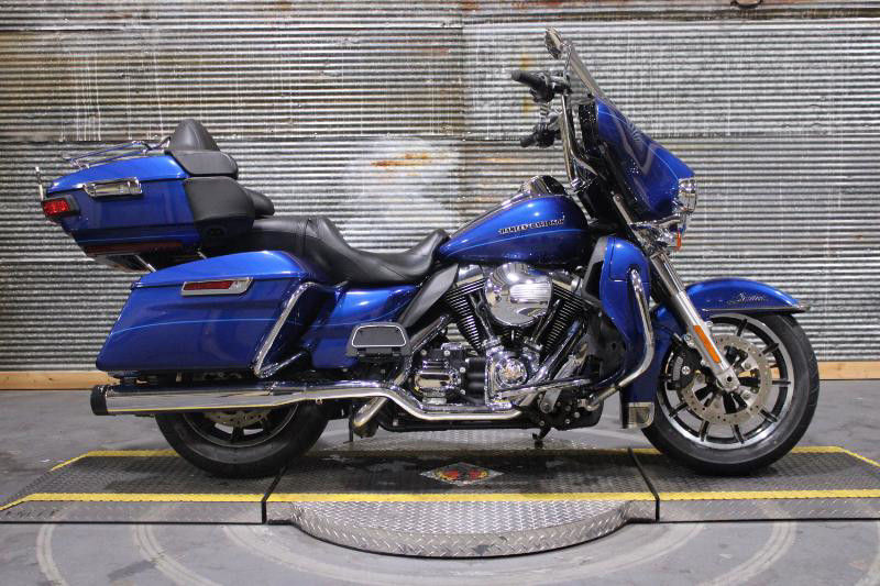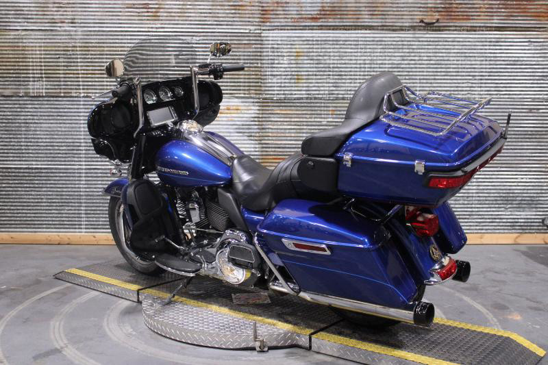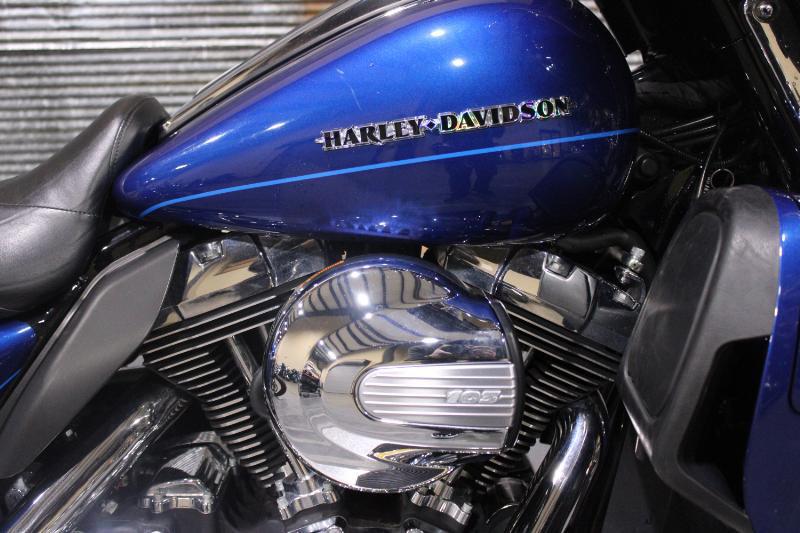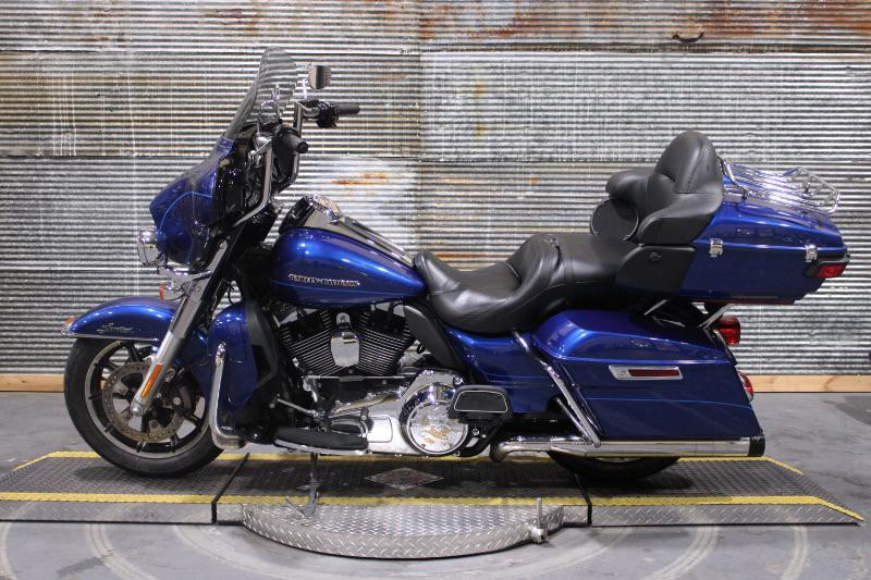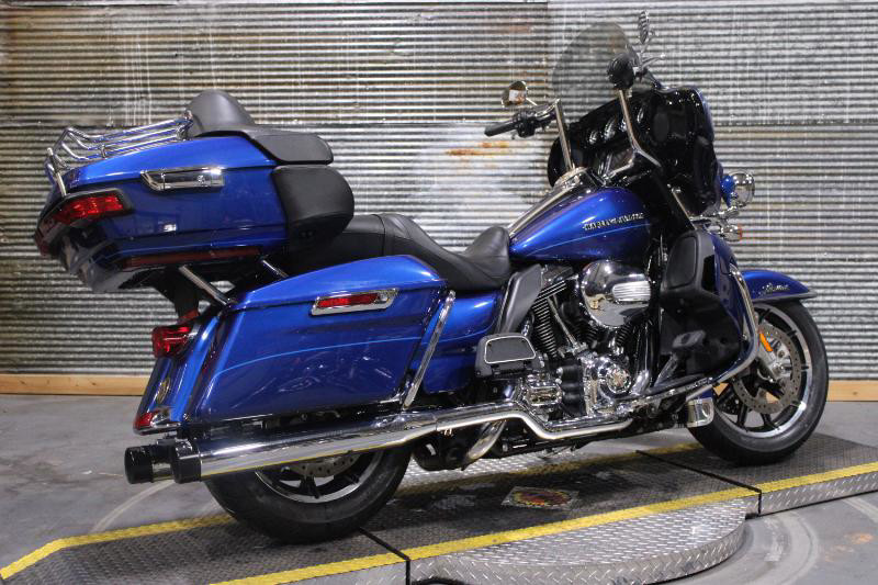 The 2015 Harley-Davidson Electra Glide Ultra Limited is a stunning touring motorcycle that combines classic Harley-Davidson styling with modern technology and comfort. This used model, with an odometer reading of 11,437 miles, is finished in a striking Superior Blue with a pinstripe, giving it a distinctive and eye-catching appearance. ???