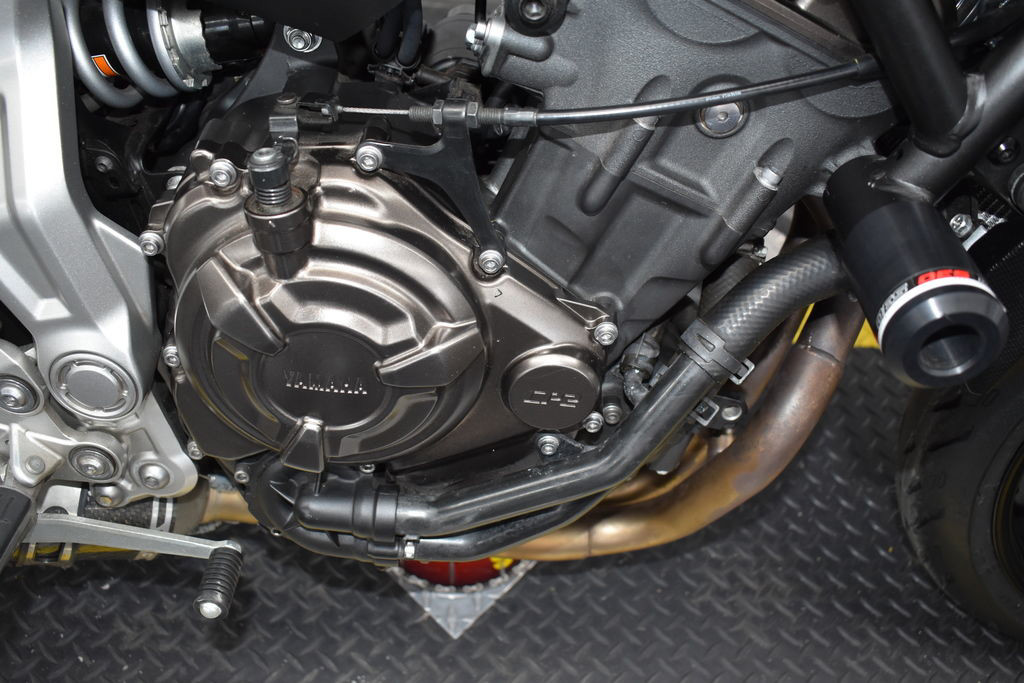 The FZ-07 features an all-new 689cc liquid-cooled, in-line twin-cylinder, DOHC, 8-valve engine with fuel injection. This engine has a unique power character. It provides outstanding low to mid-range torque with very linear throttle response, yet has as strong mid-high rpm pulling power as well. The engine develops up to 50 foot pounds of torque and is designed to maximize riding excitement in the real world.
