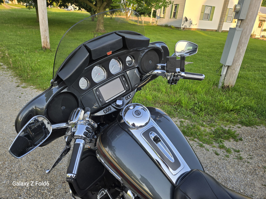 This bike has cruise control, heated grips, heated seats, two key fobs, keyless start, remote locks for the saddlebags and touring pack, it has the Harley-Davidson Boom! Infotainment system with GPS and Bluetooth stereo. Let me know if you have any questions."