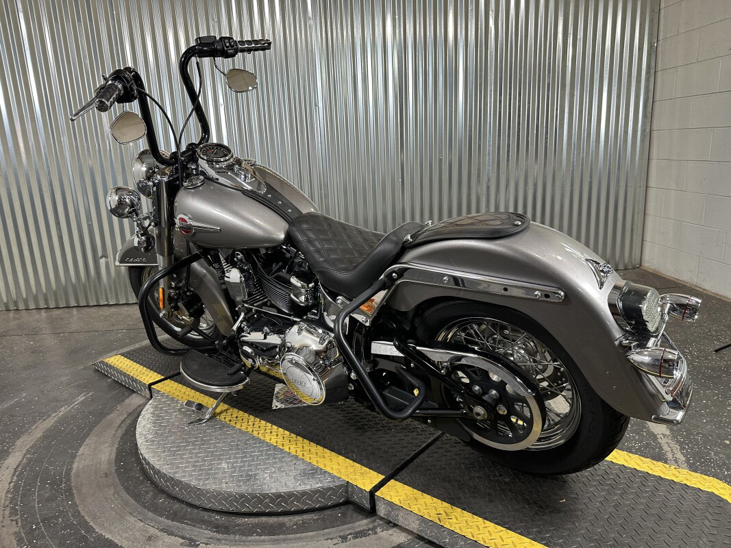 The Heritage Softail Classic drips with the nostalgia of days gone by, but that’s only half of the equation for the rider of today. The hidden suspension gives you the authentic look without the bone-shaking ride of an old Hardtail. You get the comfort of cruise control for those long stretches of pavement. A redesigned seat and redesigned leather saddlebags. And best of all, a new High-Output Twin Cam 103 engine. We’re not about to re-invent this look. But we never stop re-inventing the ride.