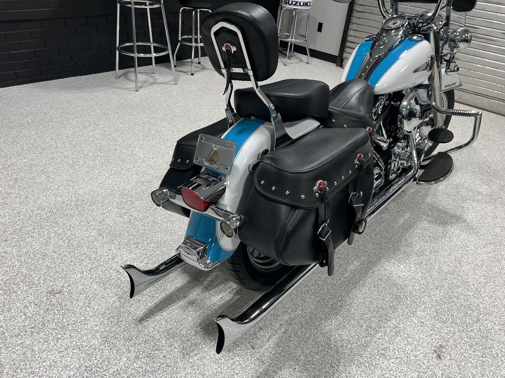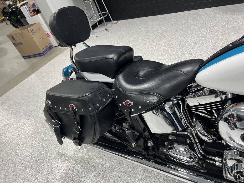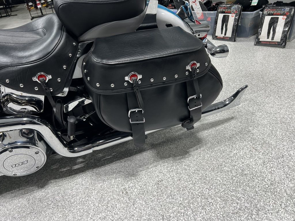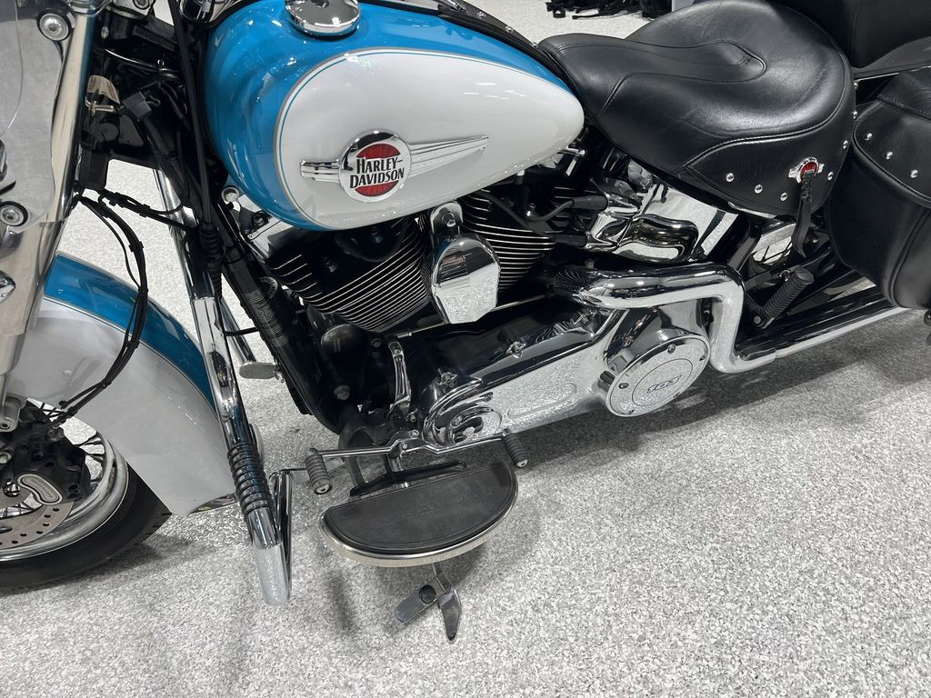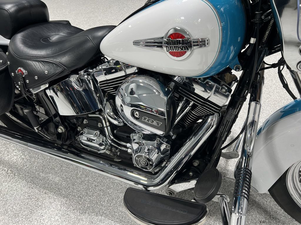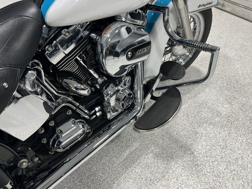 The Heritage Softail® Classic drips with the nostalgia of days gone by, but that’s only half of the equation for the rider of today. The hidden suspension gives you the authentic look without the bone-shaking ride of an old Hardtail. You get the comfort of cruise control for those long stretches of pavement. A redesigned seat and redesigned leather saddlebags. And best of all, a new High-Output Twin Cam 103™ engine. We’re not about to re-invent this look. But we never stop re-inventing the ride.