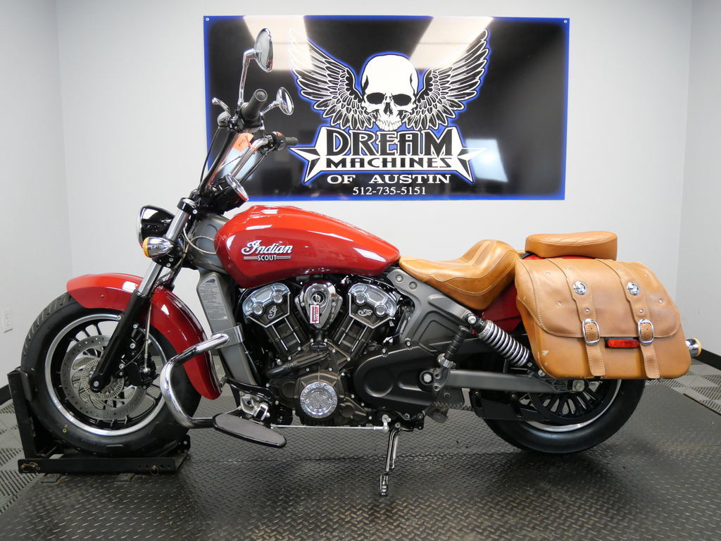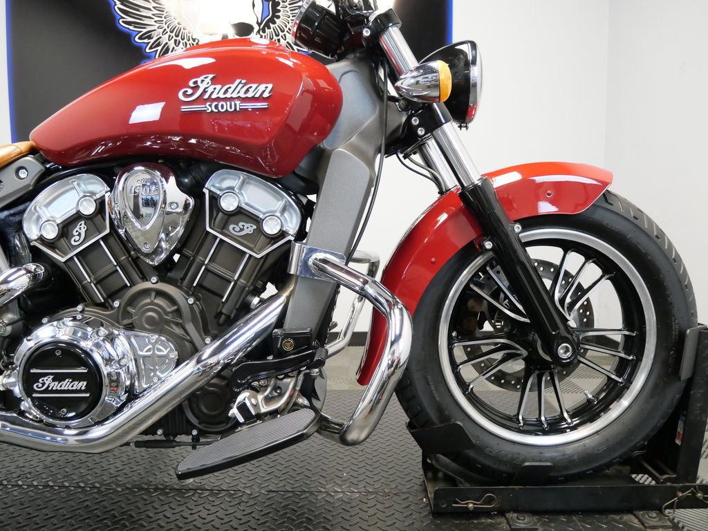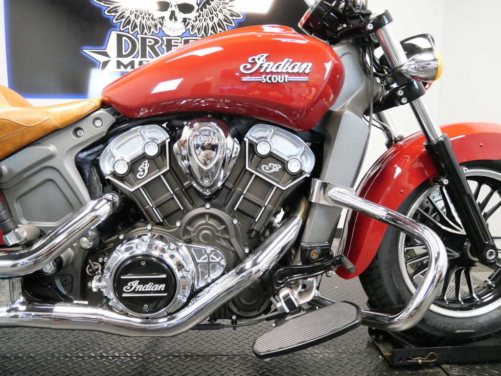 *BOOK VALUE IS $6,722 SHIPPING, LEASING, FINANCING AND EXTENDED WARRANTY MAY BE AVAILABLE! YOU ARE LOOKING AT A 2016 INDIAN SCOUT ABS WE ARE SELLING AS TMU "TRUE MILEAGE UNKNOWN" DUE TO A NEW SPEEDOMETER BEING INSTALLED. IT IS INDIAN RED IN COLOR AND POWERED BY A 1133CC (69") FUEL INJECTED ENGINE AND 6 SPEED TRANSMISSION. THE BIKE COMES WITH ABS BRAKES AND 1 KEY. THERE ARE SOME EXTRAS ON THE BIKE WHICH INCLUDE RC XHAUST ($399.95), SADDLEBAGS ($1,049.95), PASSENGER SEAT ($209.95), ENGINE GUARD ($275.95),AND DRIVER MINI FLOORBOARDS ($131.95). THERE ARE NO SCRATCHES, DENTS, OR DINGS THAT I CAN FIND WITH THE EXCEPTION OF A SMALL TOUCH UP ON THE FRONT FENDER AND SCUFFS ON THE LEFT LEATHER SADDLEBAGS. THE CHROME AND ALUMINUM ARE IN GOOD CONDITION. THE TIRES HAVE GOOD TREAD LEFT ON THEM.