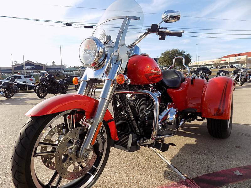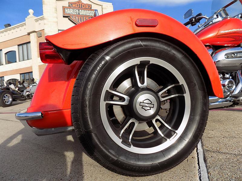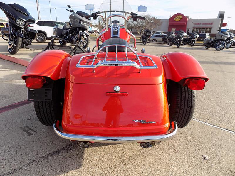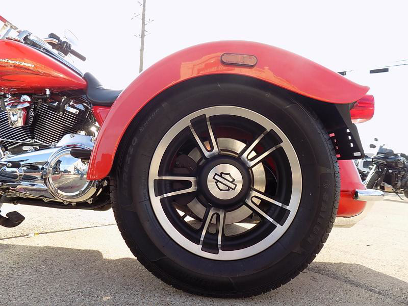 - **Classic Harley Styling:** The Freewheeler’s sleek design is highlighted by its bold color and quintessential Harley styling, combining old-school looks with modern touches.