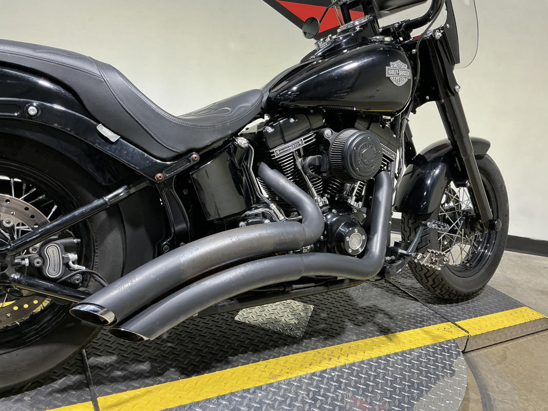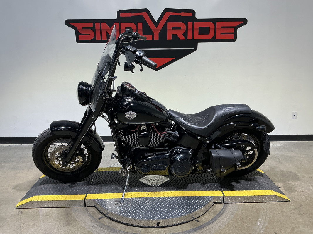 The bobber style of the Softail Slim® model gets dialed up with the Screamin’ Eagle® Air-Cooled Twin Cam 110B™ engine, black triple clamp and riser, gloss black headlamp ring, black fork slider covers, black lower forks, black and mirrors, black over/under shotgun exhaust with slash cut mufflers, and optional military themed graphics. The Softail Slim® S. Modern power. Old iron attitude.