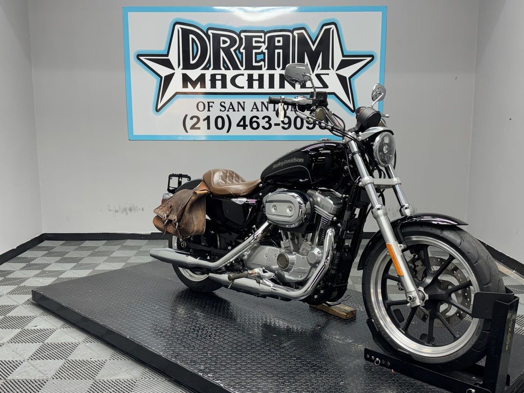 *BOOK VALUE IS $5,876 SHIPPING, LEASING, FINANCING AND EXTENDED WARRANTY MAY BE AVAILABLE! YOU ARE LOOKING AT A 2017 HARLEY DAVIDSON SPORTSTER 883 SUPERLOW (XL883L) WITH ONLY 1,011 MILES ON IT. IT IS VIVID BLACK IN COLOR AND POWERED BY A 883CC FUEL INJECTED ENGINE AND 5 SPEED TRANSMISSION. THE BIKE COMES WITH 1 KEY, 1 FOB, AND FACTORY SECURITY SYSTEM. THERE ARE A FEW EXTRAS ON THE BIKE WHICH INCLUDE MUSTANG SOLO SEAT ($239.95), LED HEADLIGHT ($199.95), AND THROW OVER SADDLEBAGS. THE CHROME AND ALUMINUM ARE IN GOOD CONDITION WITH THE EXCEPTION OF OXIDATION ON THE FORK LOWERS. THE TIRES HAVE GOOD TREAD LEFT ON THEM.