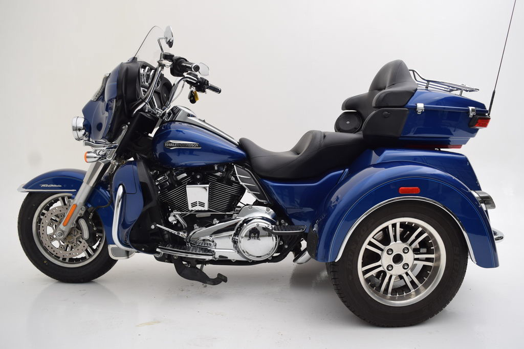Turn heads with this 2017 Harley-Davidson® FLHTCUTG – Tri Glide® Ultra, finished in the eye-catching SUPERIOR BLUE paint. With 30,263 miles, this trike delivers comfort, stability, and classic Harley style—all enhanced with a sharp list of upgrades. This Tri Glide comes equipped with an upgraded Vance & Hines exhaust system for a deeper, more commanding sound, along with upgraded handlebars, grips, and foot controls to elevate both comfort and control. The upgraded LED lights on the fairing improve visibility and add a modern touch, while the luggage rack increases your carrying capacity for long rides. Custom pin striping completes the look, giving this trike a unique, personalized finish. A well-kept and nicely upgraded Tri Glide® Ultra—ready for its next adventure.