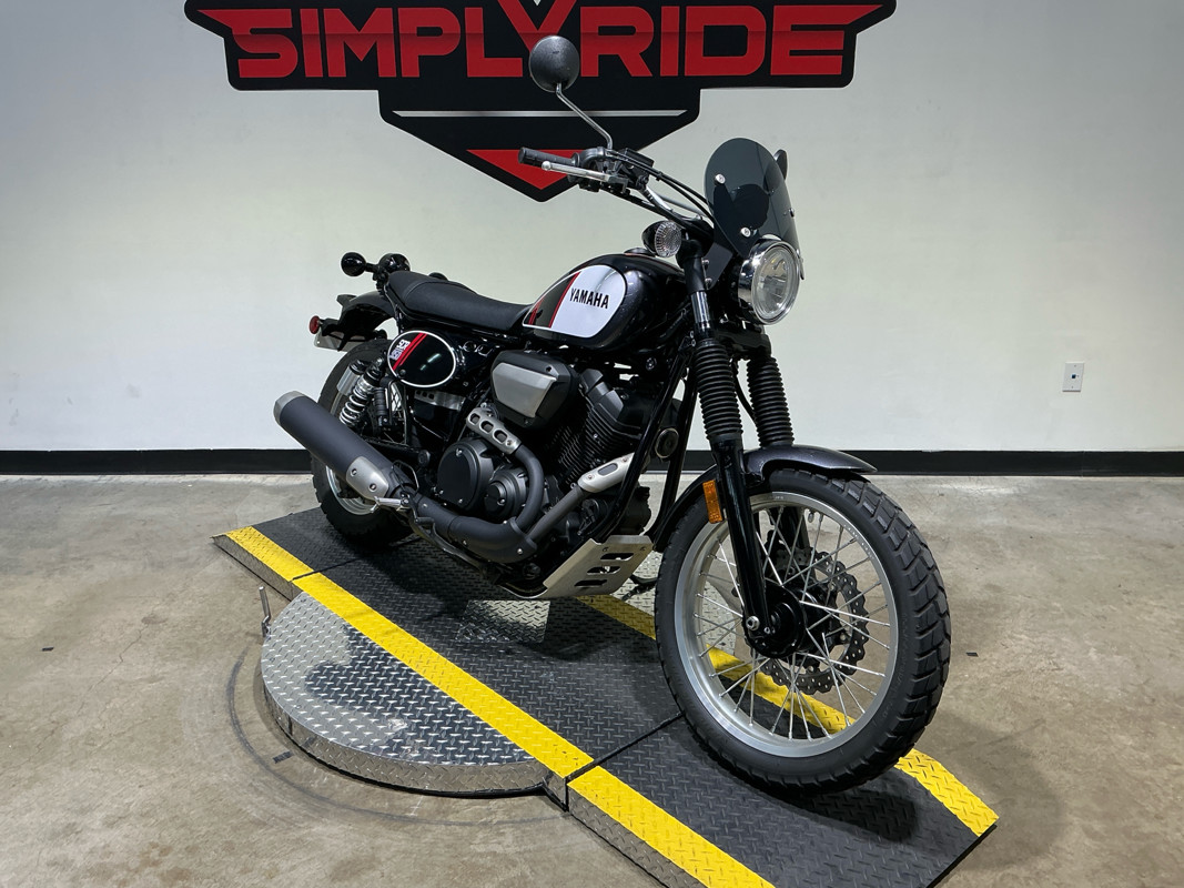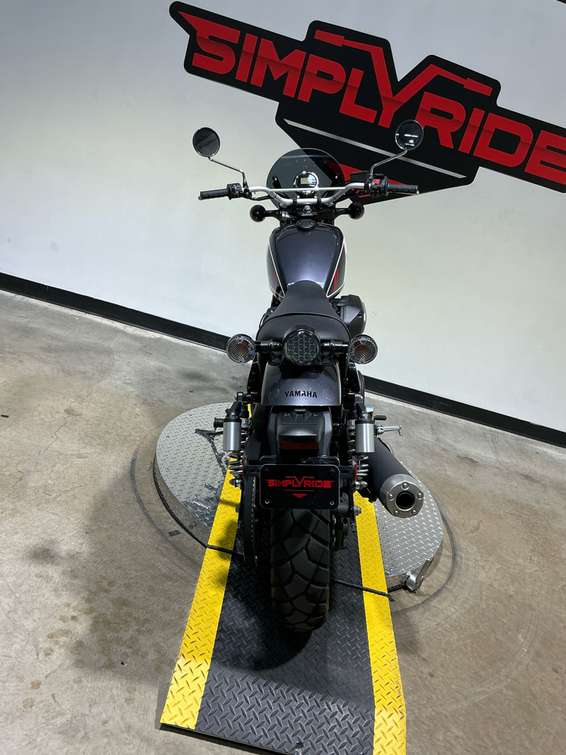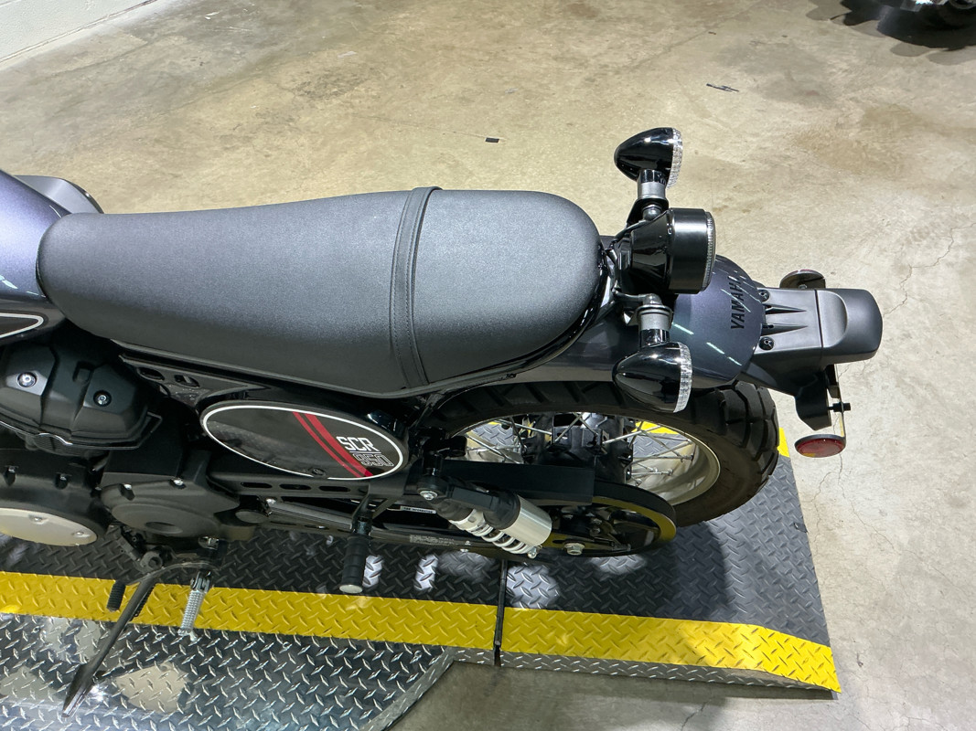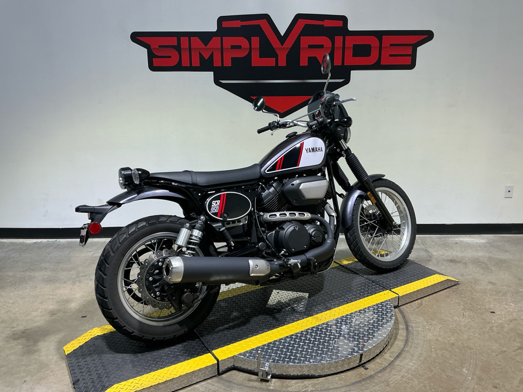 The SCR950 combines vintage, scrambler styling with modern engineering. Potent 942 cc V-twin, spoke wheels, high rear fender.