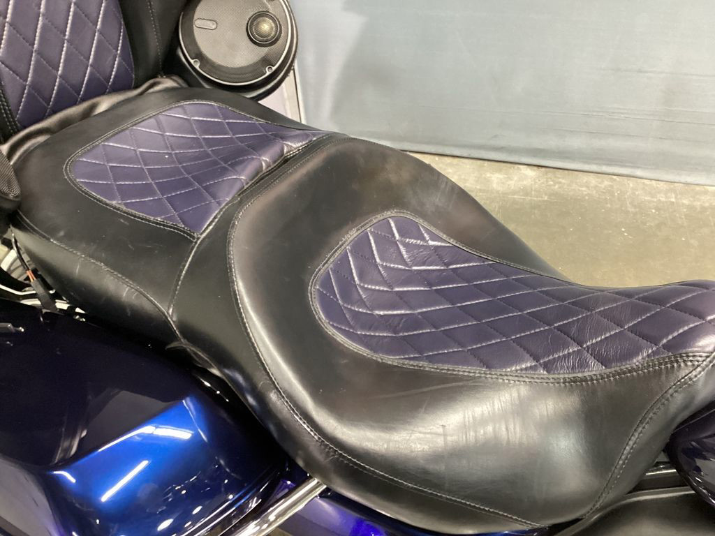A custom seat with leather inserts and heated seats for a luxurious riding experience, both for the rider and their passenger.