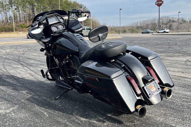 2018 Harley-Davidson® CVO™ Road Glide®If long days in the saddle and late nights on the strip are your style, you owe yourself a ride on this motorcycle.Features may include:Milwaukee-Eight® Twin-Cooled 117 EngineThe most powerful V-Twin engine ever offered from the factory, and only available in CVO™. Features color accented Rocker Box Lowers with deep orange finish. Custom Touring StyleFeatures the first Harley-Davidson factory-installed 21 inch front wheel, a unique exhaust finish, and a luxurious, super-premium paint scheme.High-Performance Front and Rear SuspensionDual bending valve front suspension and emulsion rear suspension with hand-adjustable pre-load put your in control of a plush ride.Frame-Mounted Shark Nose FairingA distinctive, menacing, mile-hungry design that cuts through the wind like no other fairing in the world.Premium BOOM!™ Box 6.5 Infotainment SystemA stylish 6.5-inch full-color touch screen display with voice activation for hands-free mobile phone, media, and navigation. Delivers powerful, pure sound and dynamic full-range audio.Wireless Headsets with Wireless Headset Interface ModuleCall hands-free on your Bluetooth® mobile phone, listen to stereo music or voice instructions of GPS navigations, and have intercom conversations with your passenger or fellow riders.