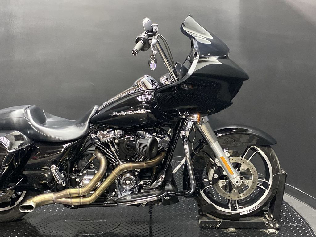 YOU ARE LOOKING AT A 2018 HARLEY DAVIDSON ROAD GLIDE (FLTRX) WITH 26,214 MILES ON IT. IT IS VIVID BLACK IN COLOR AND POWERED BY A 1746CC (107") FUEL INJECTED MILWAUKEE EIGHT ENGINE AND 6 SPEED TRANSMISSION. THE BIKE COMES WITH ABS BRAKES, CRUISE CONTROL, NAVIGATION, 1 KEY, 1 FOB, AND FACTORY SECURITY SYSTEM. THERE ARE SOME EXTRAS ON THE BIKE WHICH INCLUDE PERFORMANCE SLIP-ON MUFFLERS ($1,195.95), NESS AIR CLEANER ($329.95), LED HEADLIGHT ($579.95), KLOCKWERKS WINDSHIELD ($179.95), APE HANGER BARS ($1,500 INSTALLED), GRIPS ($99.95), AND HORN ($89.95). THERE ARE NO DENTS OR DINGS THAT I CAN FIND. THERE ARE TOUCHUPS ON THE FRONT FENDER, FRONT FAIRING, REAR FENDER, AND SADDLEBAGS. THE CHROME AND ALUMINUM ARE IN GOOD CONDITION. THE TIRES HAVE GOOD TREAD LEFT ON THEM.