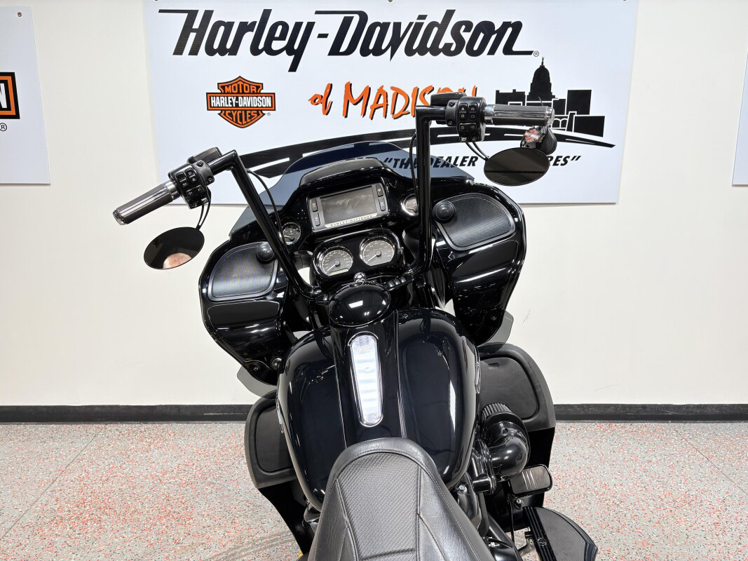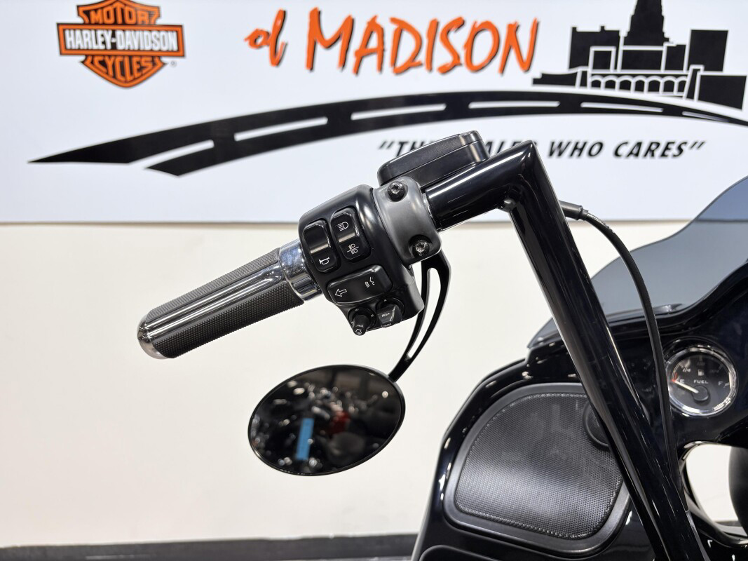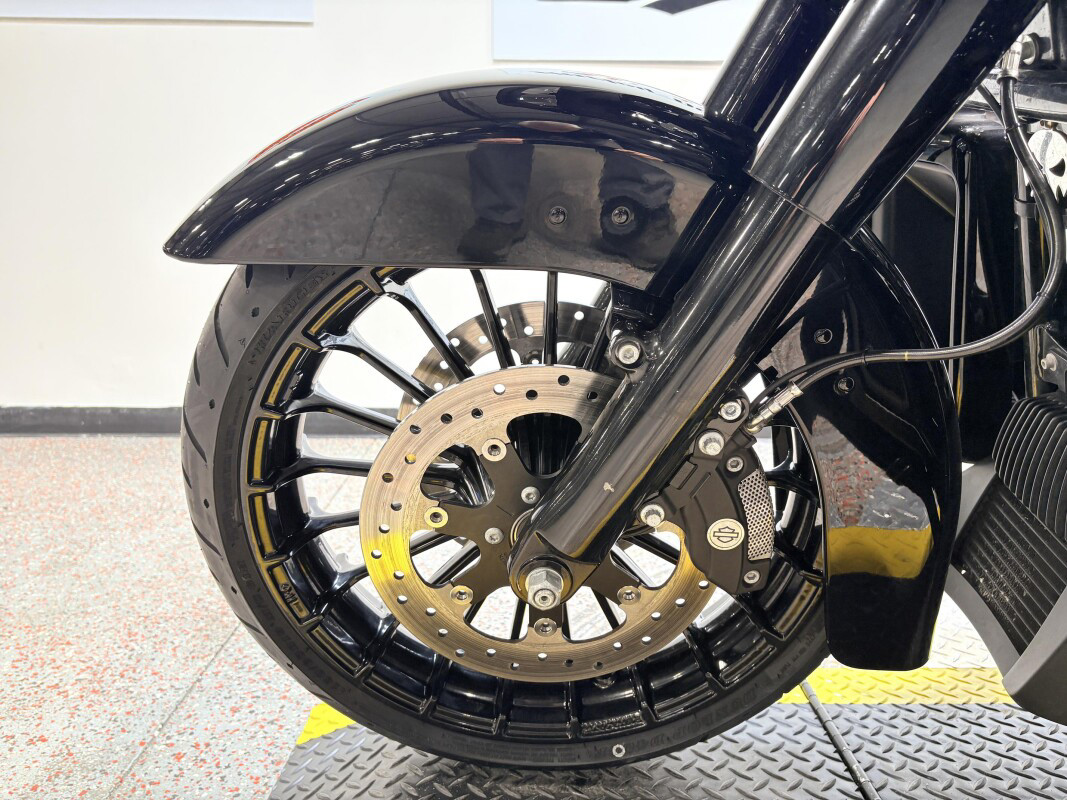This one’s for those who want to cut a wider swath. The aggressive looks and ride of the Road Glide Special motorcycle take our most road-devouring machine to an even darker place. Note the blacked-out finishes on handlebars, . Right in the middle sits the thrill-inducing torque of the blacked-out Milwaukee-Eight 107 V-Twin. It’s also loaded with premium features like 19” (483 mm) front and 18” (457 mm) rear Talon wheels, stretched saddlebags, a painted inner fairing and a BOOM! Box 6.5GT Touchscreen Infotainment System. The ride is premium too, thanks to its responsive suspension and Reflex linked Brembo brakes. Fire it up and part the crowd.