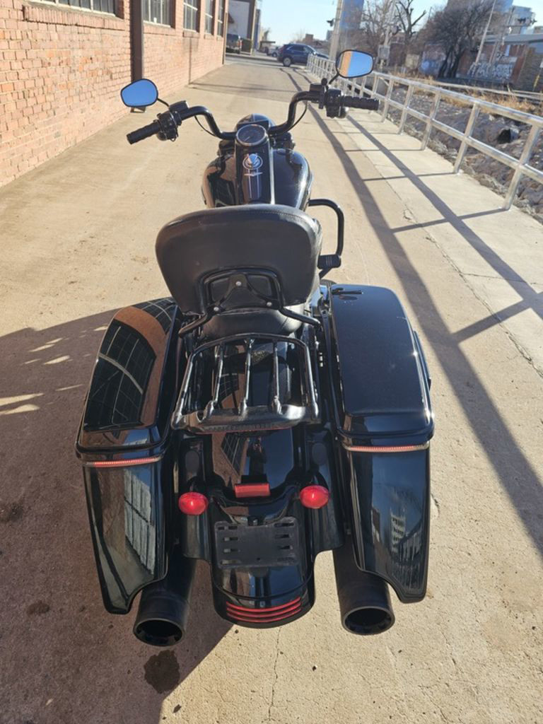 This machine is end-to-end blacked-out, stripped-down bare muscle from the aggressive turbine wheels to the tapered mufflers.