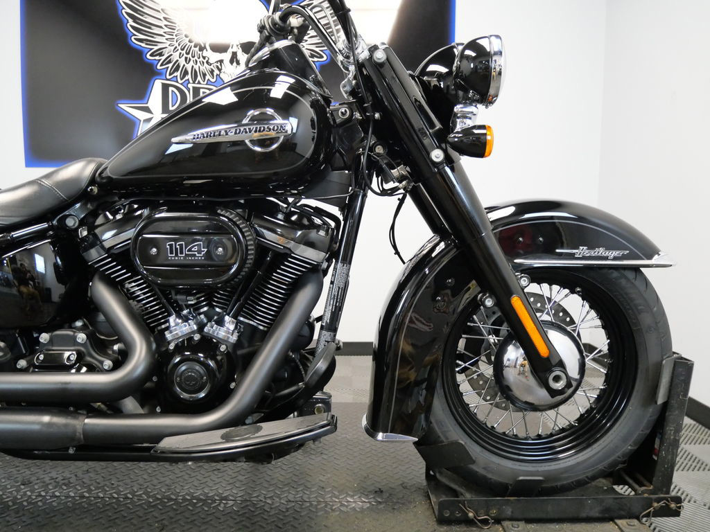 *BOOK VALUE IS $11,908 SHIPPING, LEASING, FINANCING AND EXTENDED WARRANTY MAY BE AVAILABLE! YOU ARE LOOKING AT A 2018 HARLEY DAVIDSON HERITAGE CLASSIC 114 (FLHCS) WITH 24,297 MILES ON IT. IT IS VIVID BLACK IN COLOR AND POWERED BY A 1868CC (114") FUEL INJECTED MILWAUKEE EIGHT ENGINE AND 6 SPEED TRANSMISSION. THE BIKE COMES WITH ABS BRAKES, CRUISE CONTROL, 2 KEYS, 1 FOB, AND FACTORY SECURITY SYSTEM. THERE ARE SOME EXTRAS ON THE BIKE WHICH INCLUDE COBRA SLIP-ON MUFFLERS ($399.95), RIDER BACKREST ($139.95), GRIPS ($79.95), MIRRORS ($89.95), TIMER COVER ($28.95) AND DERBY COVER ($58.95). THERE ARE NO SCRATCHES, DENTS, OR DINGS THAT I CAN FIND WITH THE EXCEPTION OF SMALL TOUCH UPS ON THE FRONT FENDER AND TANK. THE CHROME AND ALUMINUM ARE IN GOOD CONDITION. THE TIRES HAVE GOOD TREAD LEFT ON THEM.