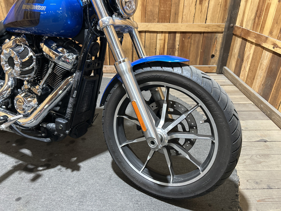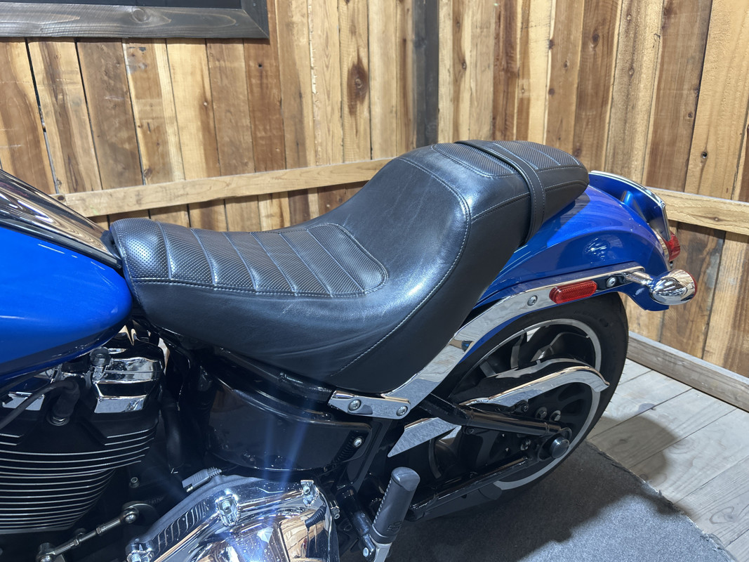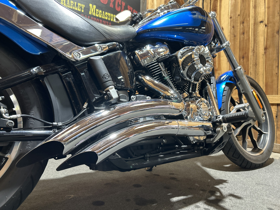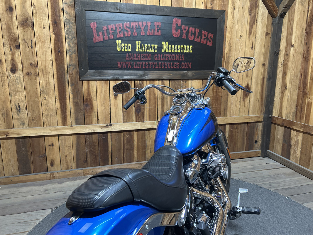 * Harley OEM Electric blue Paintjob * 107 Cubic Inch Harley Milwaukee 8 Motor * 6 Speed Transmission * Mid Controls * LED Headlight and Front Turn Signals * Two-Up Seat * Passenger Foot Pegs * Vance and Hines Chrome Big Radius Exhaust