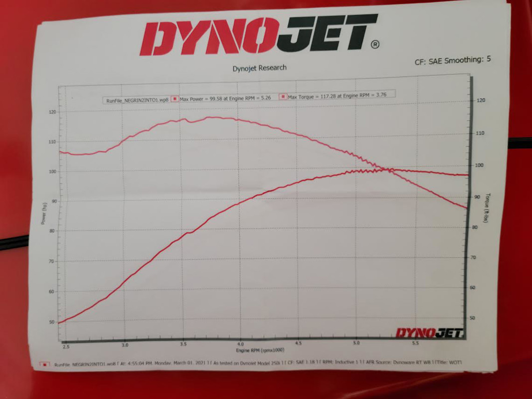 5.Power vision dyno tune to 100hp and 117 lbft torque.