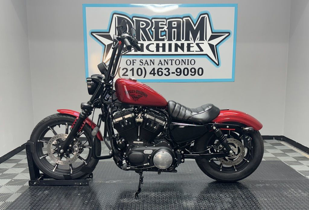 *BOOK VALUE IS $6,040 SHIPPING, LEASING, FINANCING AND EXTENDED WARRANTY MAY BE AVAILABLE! YOU ARE LOOKING AT A 2018 HARLEY DAVIDSON SPORTSTER IRON 883 (XL883N) WITH 12,466 MILES ON IT. IT IS WICKED RED IN COLOR AND POWERED BY A 883CC FUEL INJECTED ENGINE AND 5 SPEED TRANSMISSION. THE BIKE COMES WITH 1 KEY. THERE ARE SOME EXTRAS ON THE BIKE WHICH INCLUDE VANCE & HINES GRENADE EXHAUST ($940.95), VANCE & HINES AIR CLEANER ($329.95), ENGINE GUARD ($214.95), LED HEADLIGHT ($199.95), HEADLIGHT TRIM RING ($42.95), APE HANGER BARS ($199.95), AND GRIPS ($79.95). THERE ARE NO SCRATCHES, DENTS, OR DINGS THAT I CAN FIND WITH THE EXCEPTION OF A SMALL IMPRESSION AND SCUFFS ON THE REAR FENDER. THE CHROME AND ALUMINUM ARE IN GOOD CONDITION. THE TIRES HAVE GOOD TREAD LEFT ON THEM.
