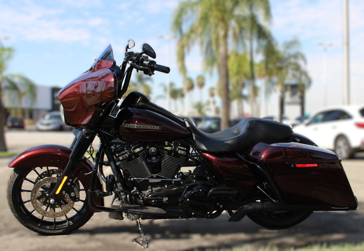 This 2018 Street Glide Special FLHXS delivers both style and touring comfort, finished in Twisted Cherry paint with key custom upgrades.