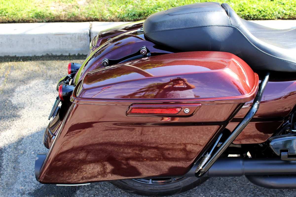 Stretched saddlebags – touring storage with sleek lines.