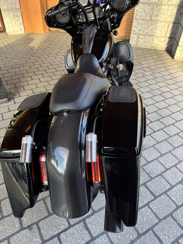 D&D ExhaustNo-Loss Air Intake from All American CycleThrashin Supply Co. Floorboards, brake lever and heel-toe shifterOG fork braceGeyser Glide rear reservoir shocksUpgraded LED lightsCarbon Visionary front & rear fenderCarbon Visionary tank bib