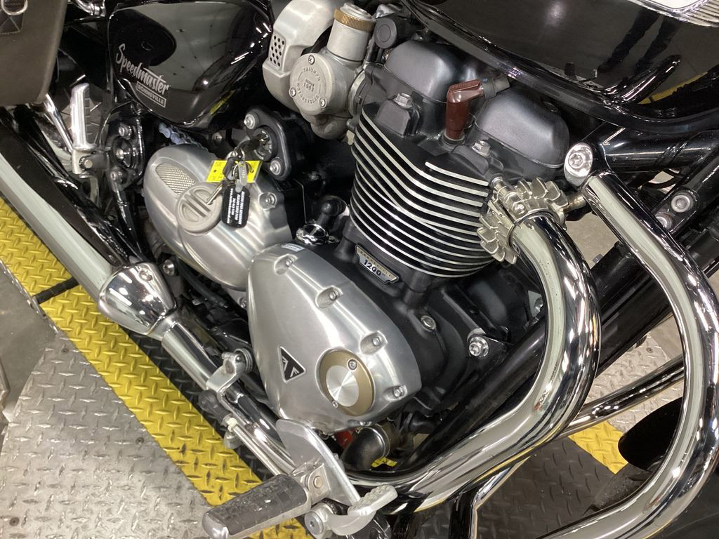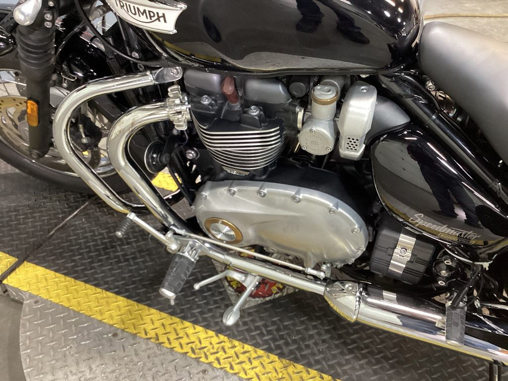 Its classic silhouette, machined engine cooling fins, carb style twin throttle bodies, finned exhaust clamps, black rubber fork gaiters, and signature sculpted tank, all play a key part in delivering the Speedmaster's iconic Bonneville style. The classic custom attitude and laid-back style is further enhanced by a host of original distinctive, authentic, and unique new Bonneville Speedmaster features and touches.